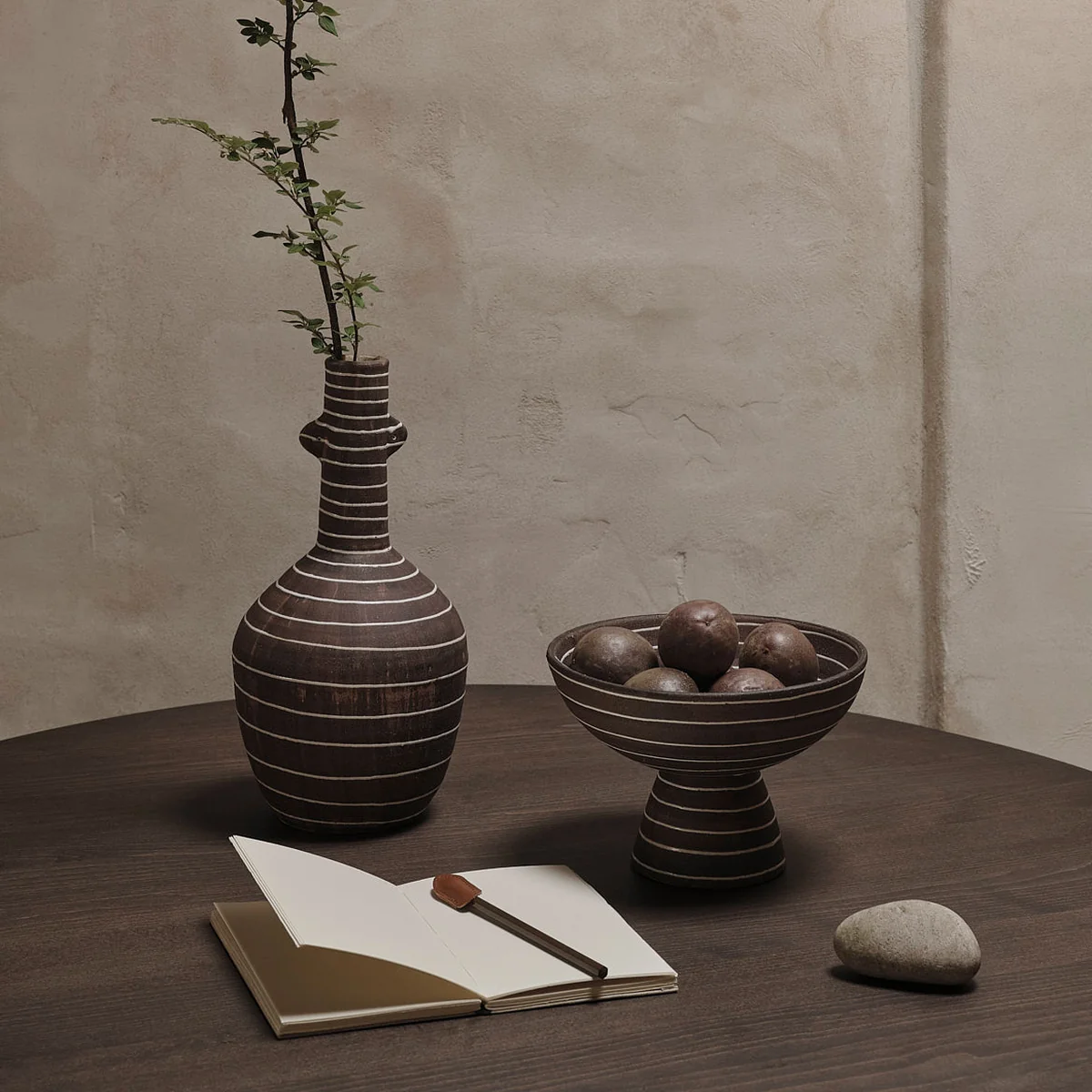 Le vase Brura de Ferm Living est un élément de décoration élégant qui séduit par sa combinaison unique de matériaux et de design. Fabriqué en terre cuite de qualité supérieure, le vase confère à chaque pièce une note chaleureuse et naturelle. Sa particularité réside dans les rayures peintes à la main, qui confèrent au vase une esthétique moderne et graphique tout en apportant une touche d'authenticité artisanale. Le vase Brura convient aussi bien pour des compositions florales fraîches que comme objet d'art à part entière, qui attire le regard dans n'importe quel intérieur.