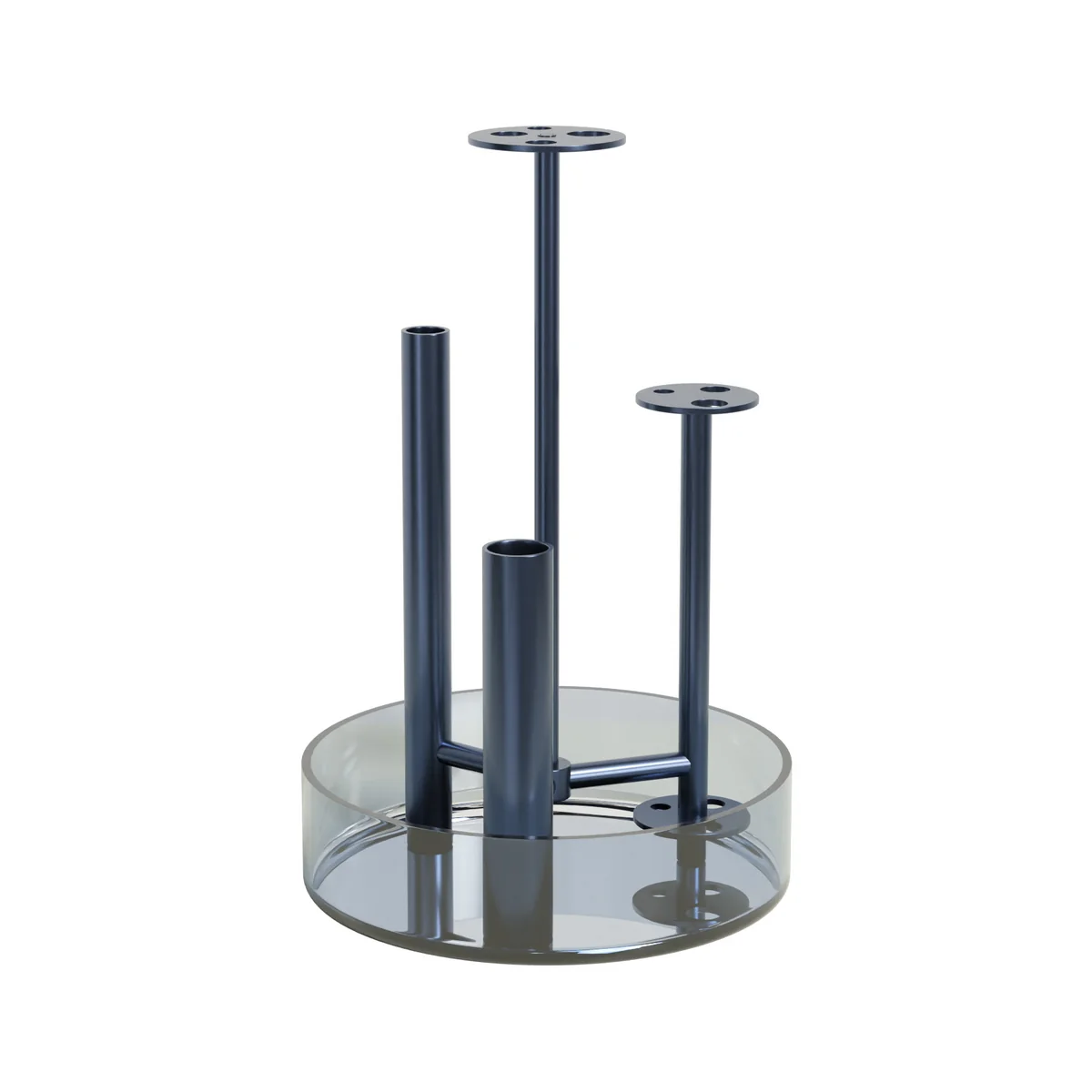 La coupe à eau du Ikeru vase est en verre vert forêt, les tubes et le support sont en aluminium. Le Ikeru Le vase Low est également disponible en version haute.