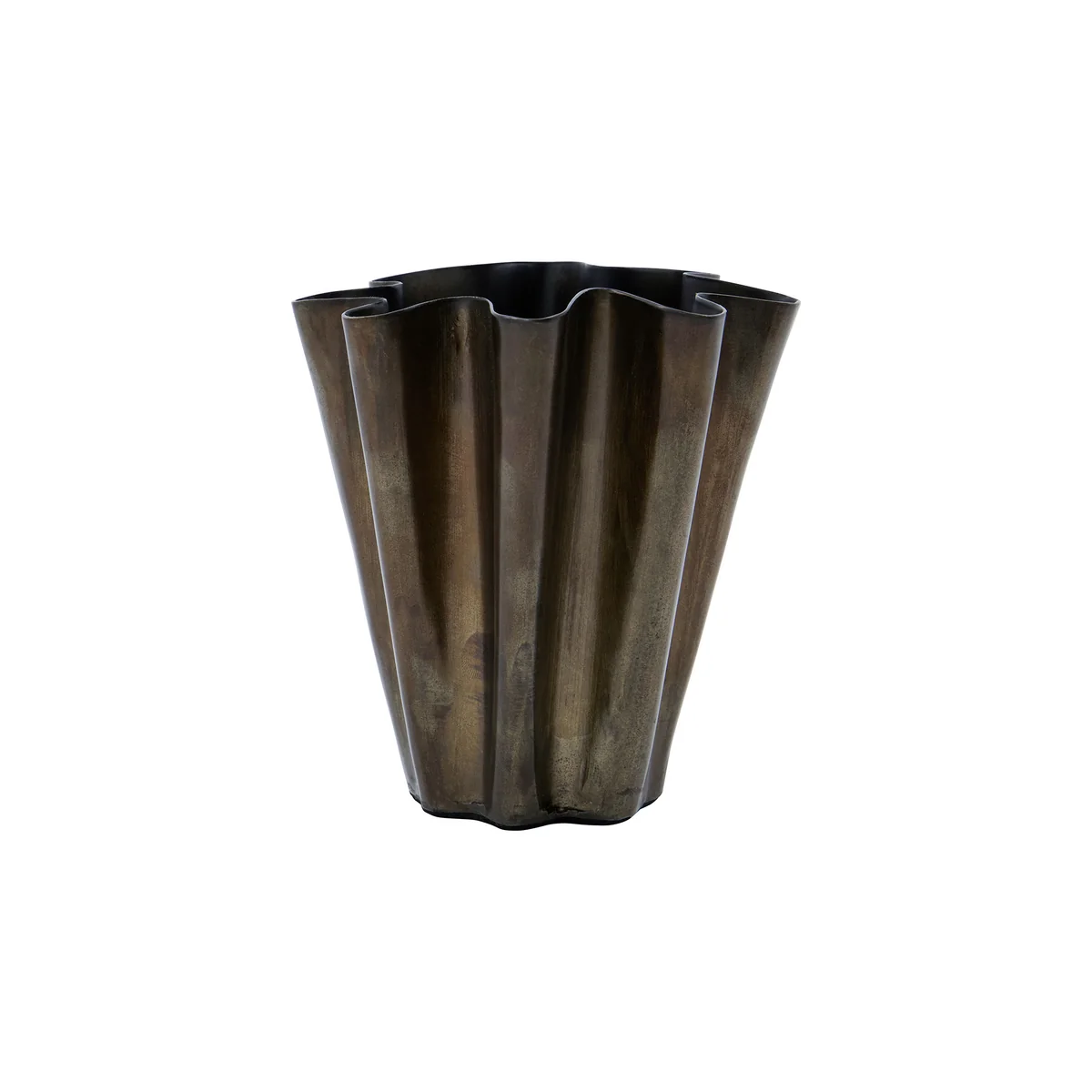 Les plis dynamiques du vase ne sont pas seulement décoratifs, ils soutiennent les brins des fleurs. Le vase peut ainsi accueillir aussi bien des fleurs et des arbustes individuels que des bouquets luxuriants.