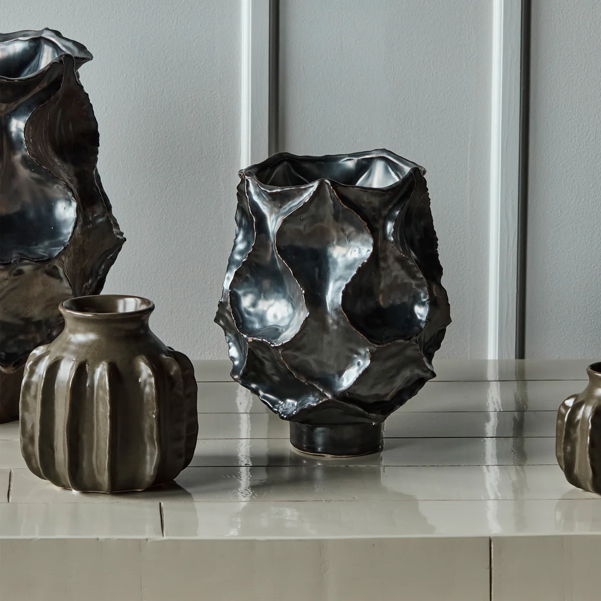 Le vase Waves de House Doctor allie une élégance organique à un look moderne et artistique. Fabriqué en grès et affiné avec un émail métallique antique, chaque vase devient un point fort unique. Qu'il soit utilisé comme solitaire ou décoré de quelques branches et fleurs, il apporte une touche raffinée au salon, à la salle à manger ou à l'entrée et confère de la personnalité à votre intérieur.