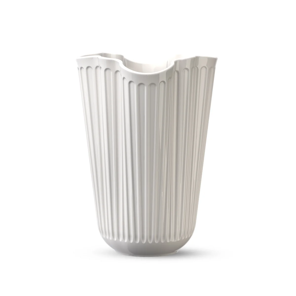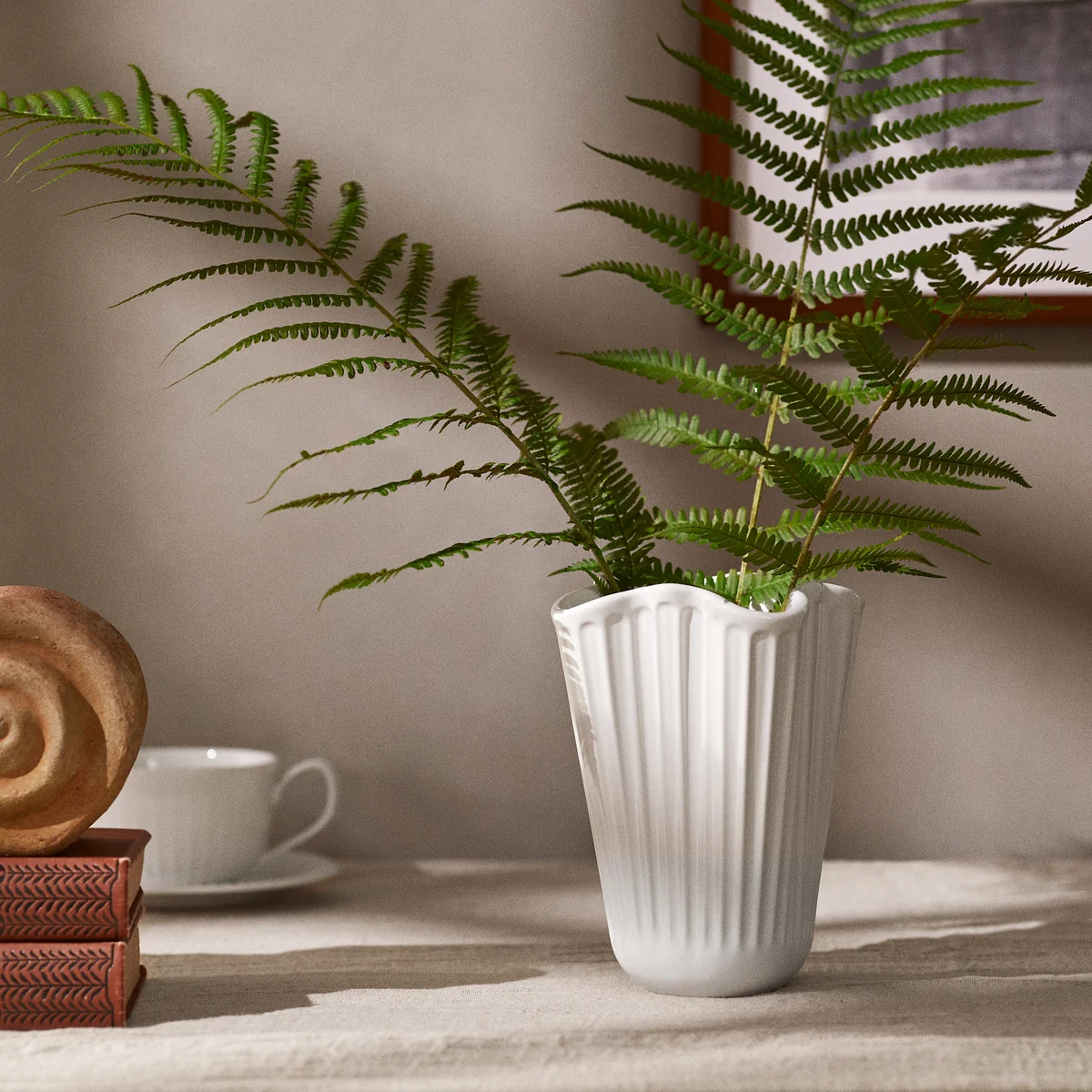 Le vase Hammershøi Unfold de Kähler Design allie l'artisanat danois classique à une expression moderne. Pour le 10e anniversaire de la célèbre série Hammershøi, le vase se présente sous une forme pliée particulière qui permet aux fleurs de s'incliner naturellement sur le côté et souligne leur longueur visuelle. Les rainures caractéristiques, inspirées du design de Svend Hammershøi dans les années 1930, confèrent au vase une élégance intemporelle.