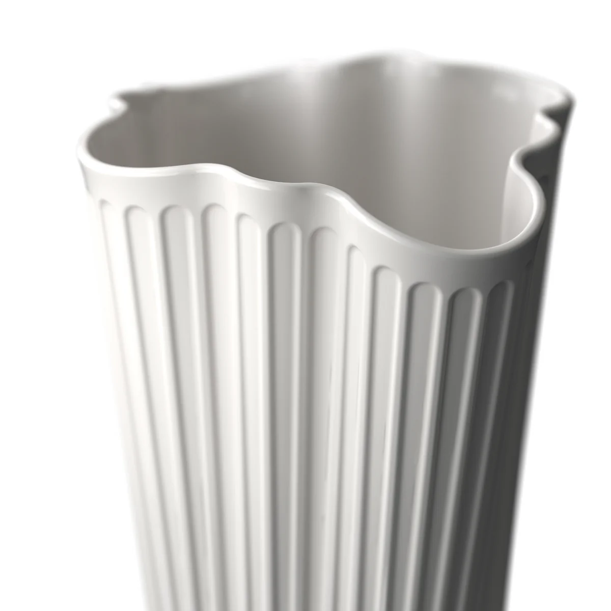 Fabriqué en céramique blanche crayeuse de haute qualité, le vase Hammershøi Unfold est disponible en deux tailles : 16,5 cm et 20,5 cm. En les combinant, on obtient des compositions harmonieuses pour des fleurs fraîches ou des branches décoratives. Le vase s'intègre avec style dans différentes ambiances et apporte une touche à la fois nostalgique et contemporaine à chaque intérieur.