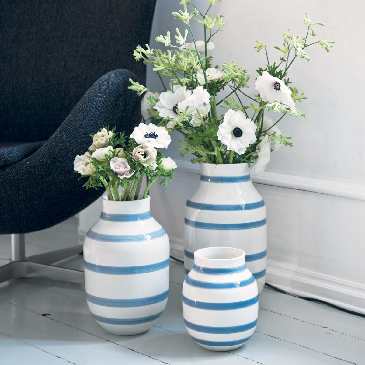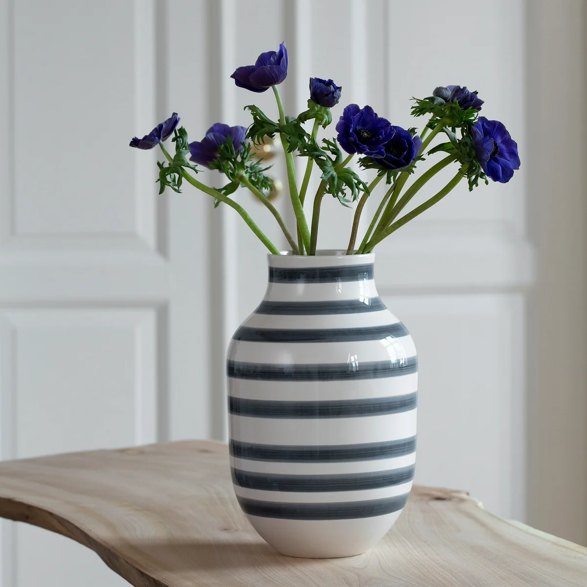 Le site Omaggio met individuellement en valeur les belles fleurs de saison et crée un contraste extraordinaire avec les structures fines des fleurs grâce à ses rayures frappantes. Ce vase accrocheur peut également être utilisé sans composition florale comme objet décoratif, par exemple sur la table à manger.