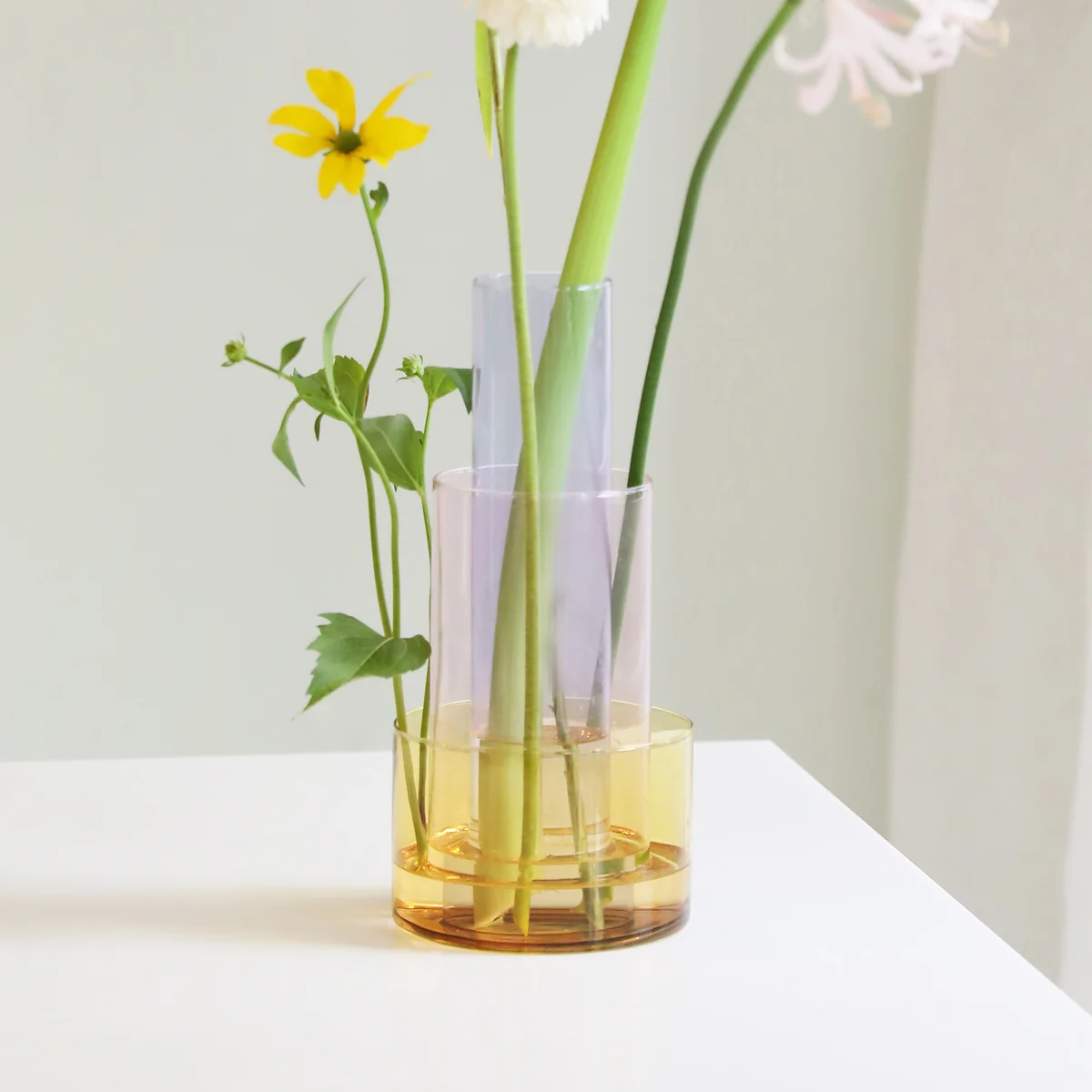 Le Amphi Vase de & klevering , conçu par Lex Pott pour le sous-label Buro Berger, apporte joie et inspiration dans votre intérieur grâce à son design flexible. Le vase permet d'agencer différentes longueurs de tiges de fleurs dans ses zones multicouches et de créer ainsi des compositions florales individuelles et impressionnantes. Grâce aux quantités d'eau réglables dans les différentes sections, vous pouvez adapter le vase de manière optimale à vos idées créatives. Les tons clairs, inspirés des marches d'un amphithéâtre, créent des superpositions vivantes et des dégradés de couleurs harmonieux qui apportent une touche de gaieté même sans fleurs. Fabriqué en verre borosilicaté de qualité supérieure, le vase allie Amphi vase allie précision technique et design moderne et constitue un véritable point fort dans chaque pièce.