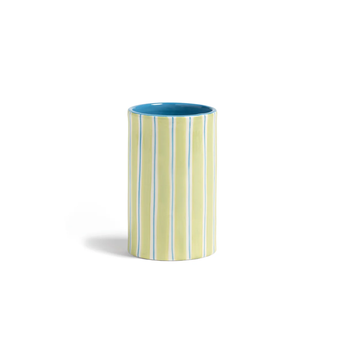 Le vase Ray de & klevering a été conçu pour ajouter une touche de style à toute composition de table. Le motif à rayures peint à la main et la forme irrégulière font de ce vase une véritable pièce unique qui attire immédiatement le regard. Qu'il soit utilisé comme surface de présentation impressionnante pour des fleurs fraîches, des branches décoratives ou comme lieu de rangement pratique pour les ustensiles de cuisine, le vase Ray séduit par son look moderne et ses multiples possibilités d'utilisation.