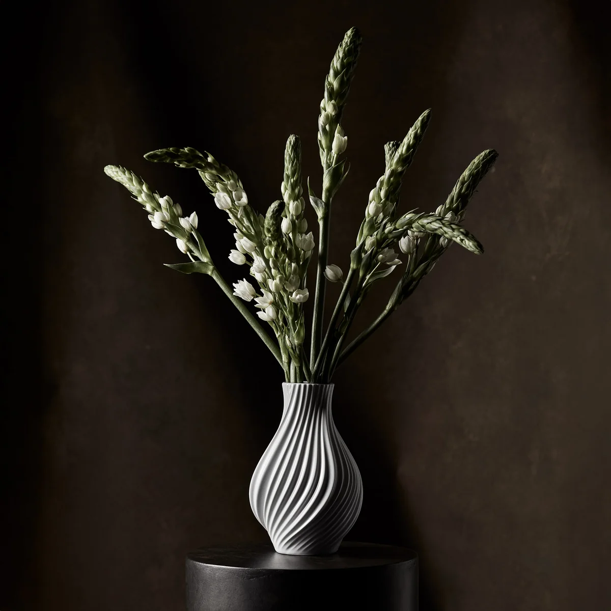 Le vase Twist de Lyngby Porcelæn est une interprétation moderne des formes de vases classiques, inspirée par des structures naturelles telles que l'écorce des arbres, les tiges de fleurs et les galaxies en spirale. Le design sculptural joue avec les lignes caractéristiques de la série Lyngby et confère à l'objet en porcelaine un mouvement calme et fluide. Avec sa forme claire et sa présence élégante, le vase s'intègre harmonieusement dans les intérieurs modernes - seul comme Statement-Piece ou en combinaison avec d'autres tailles de la série (18, 25 et 31 cm).