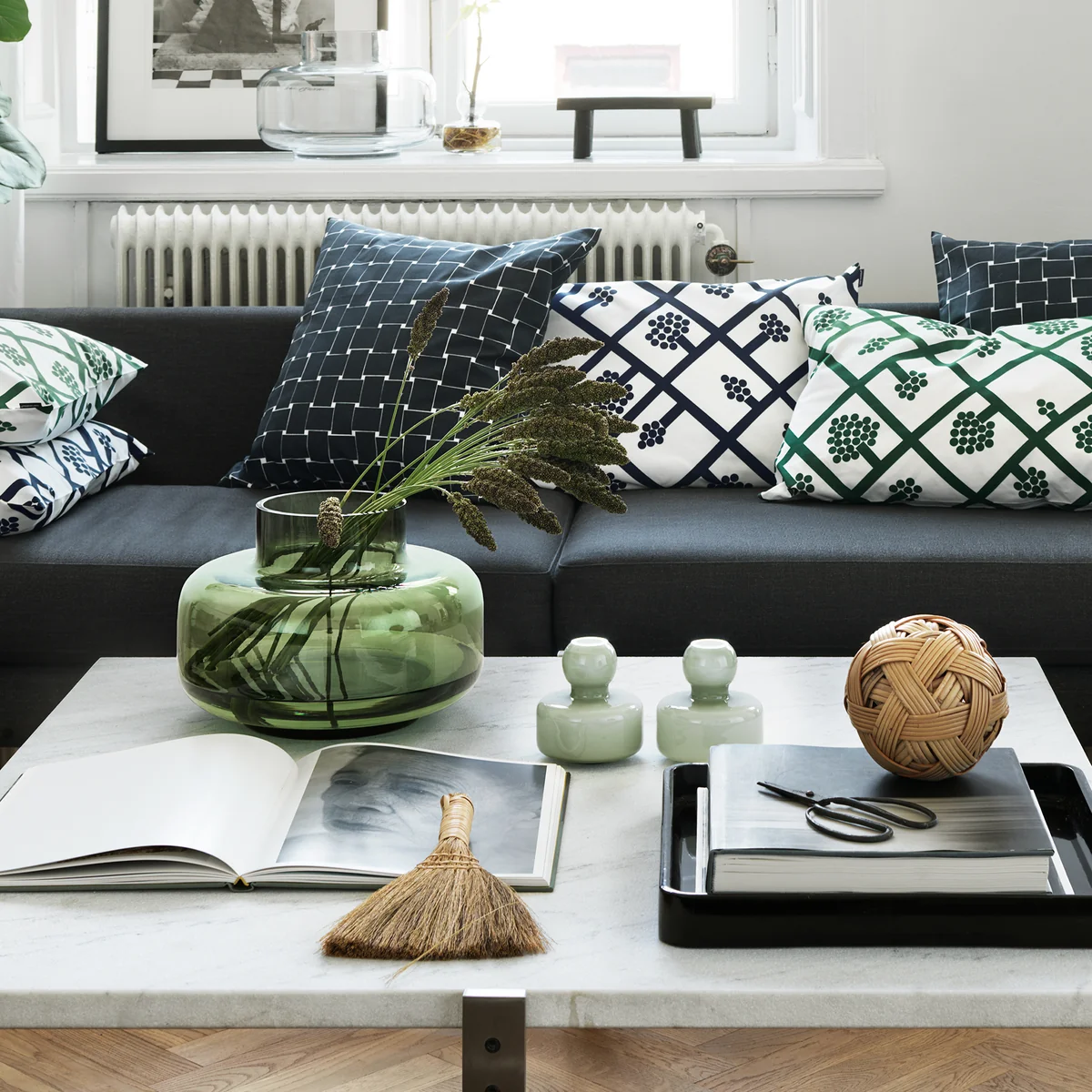 Le vase Urna Vase de Marimekko séduit par sa taille exceptionnellement imposante et sa grande ouverture, qui convient parfaitement pour présenter un bouquet de fleurs voluptueux. Le vase a été conçu par Carina Seth-Andersson.