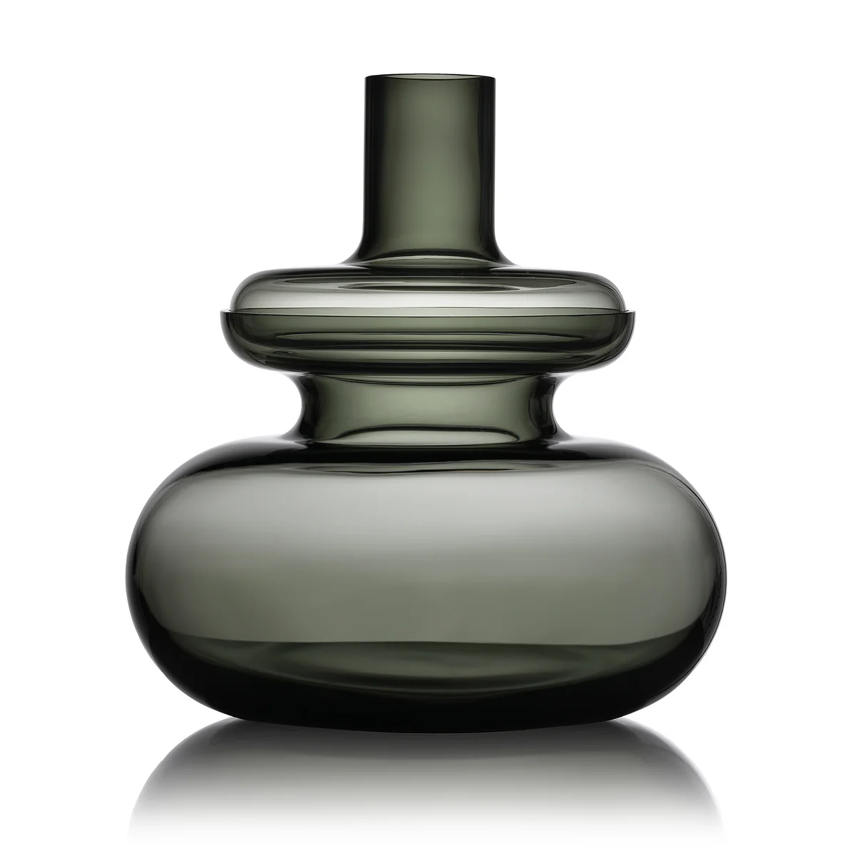Le Inu de Neu Studio pour Zone Denmark se distingue par son magnifique design sculptural. Il se compose de deux parties, tandis que la partie supérieure est pivotante. Si le col est tourné vers le bas, il est possible de placer des bouquets hauts et volumineux. En revanche, si le col est tourné vers le haut, des branches ou des tiges isolées peuvent être placées. La partie supérieure peut toutefois être entièrement retirée, le vase embrasse ainsi de grands bouquets denses. Inu Il embellit merveilleusement les intérieurs avec des fleurs séchées ou fraîches. Le vase en verre est disponible en différentes tailles et couleurs.