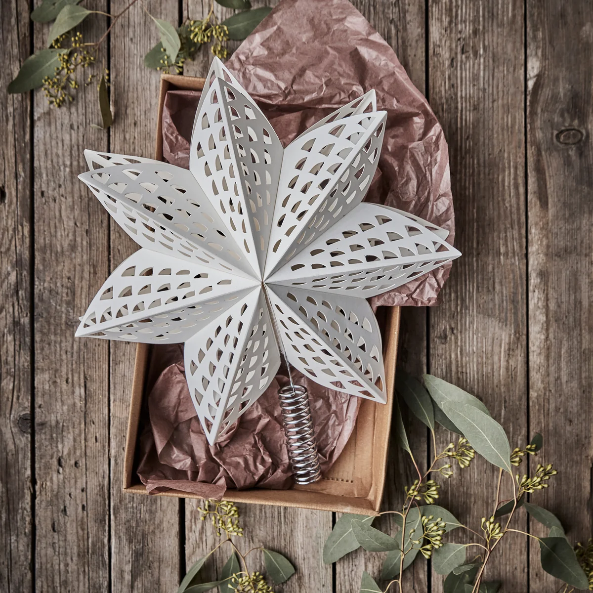 L'étoile de Noël Gint de House Doctor dispose d'un aspect léger qui n'alourdit pas l'arbre. La structure filigrane confère à l'étoile un aspect aérien et élégant qui convient parfaitement à tout arbre de Noël. L'étoile de sapin en papier n'attire pas seulement les regards, elle crée également une atmosphère chaleureuse et festive dans la maison.