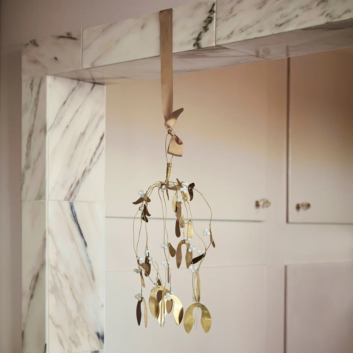 L'ornement Mistletoe de House Doctor est un point de mire unique dans tout intérieur de Noël. L'ornement présente des feuilles dorées et des perles blanches qui, ensemble, forment un magnifique design de Noël. L'ornement peut être utilisé et combiné de multiples façons, selon les souhaits de chacun.
