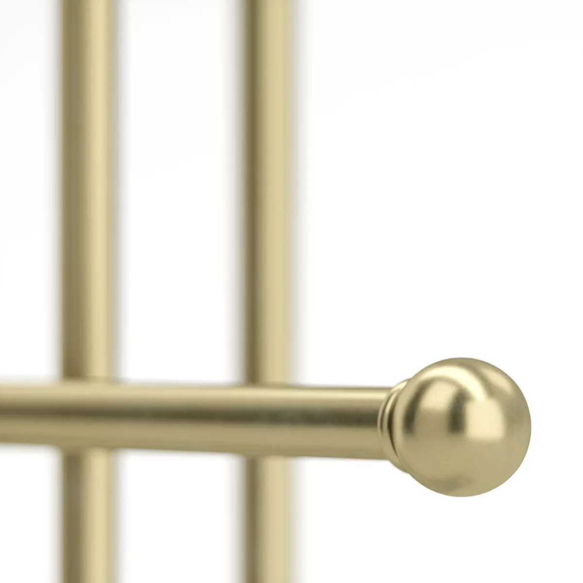 Les tiges en forme de T sont fixées sur une plaque brillante qui sert de support supplémentaire pour les boucles d'oreilles et autres accessoires. Le porte-bijoux conçu par Alan Wisniewski est disponible en plusieurs versions. Trigem Le support pour bijoux est disponible en différentes variantes avec un revêtement en laiton ou en nickel.