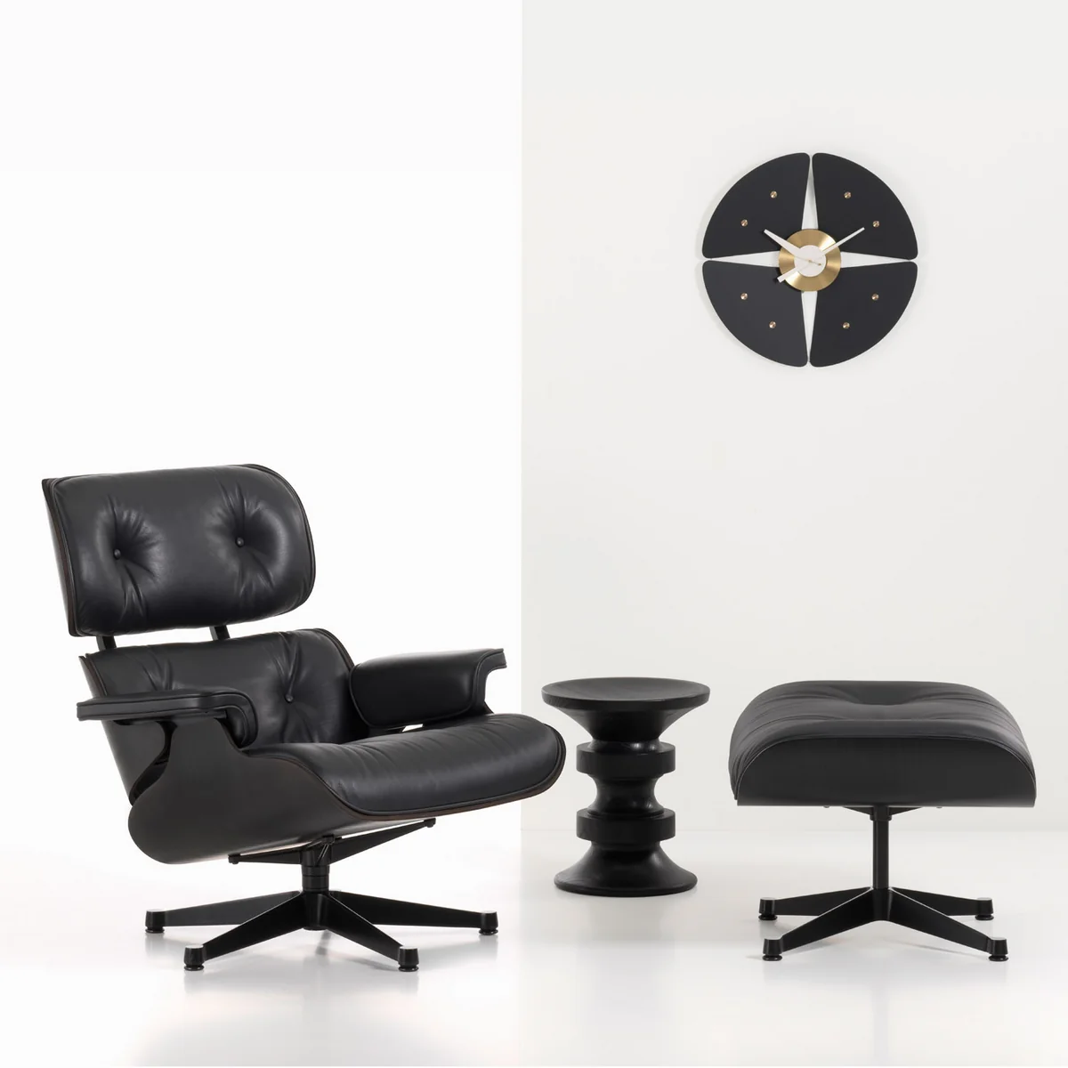 Dans une diversité des matériaux et formes sculpturales, les horloges de George Nelson incarnent le joie de vivre des années 50. À cette époque, l’Amérique a été marquée par la croyance dans le progrès et la reprise économique. Tout semblait possible, on a voulu être moderne. Dans le but d’apporter le design moderne aussi dans les maison, George Nelson a conçu une programme des objets quotidien comme des lampes, horloges et autres accessoires de maison - les icônes du design des années 50 sont nés, tels que le Ball Clock ou le Bubble Lamp.