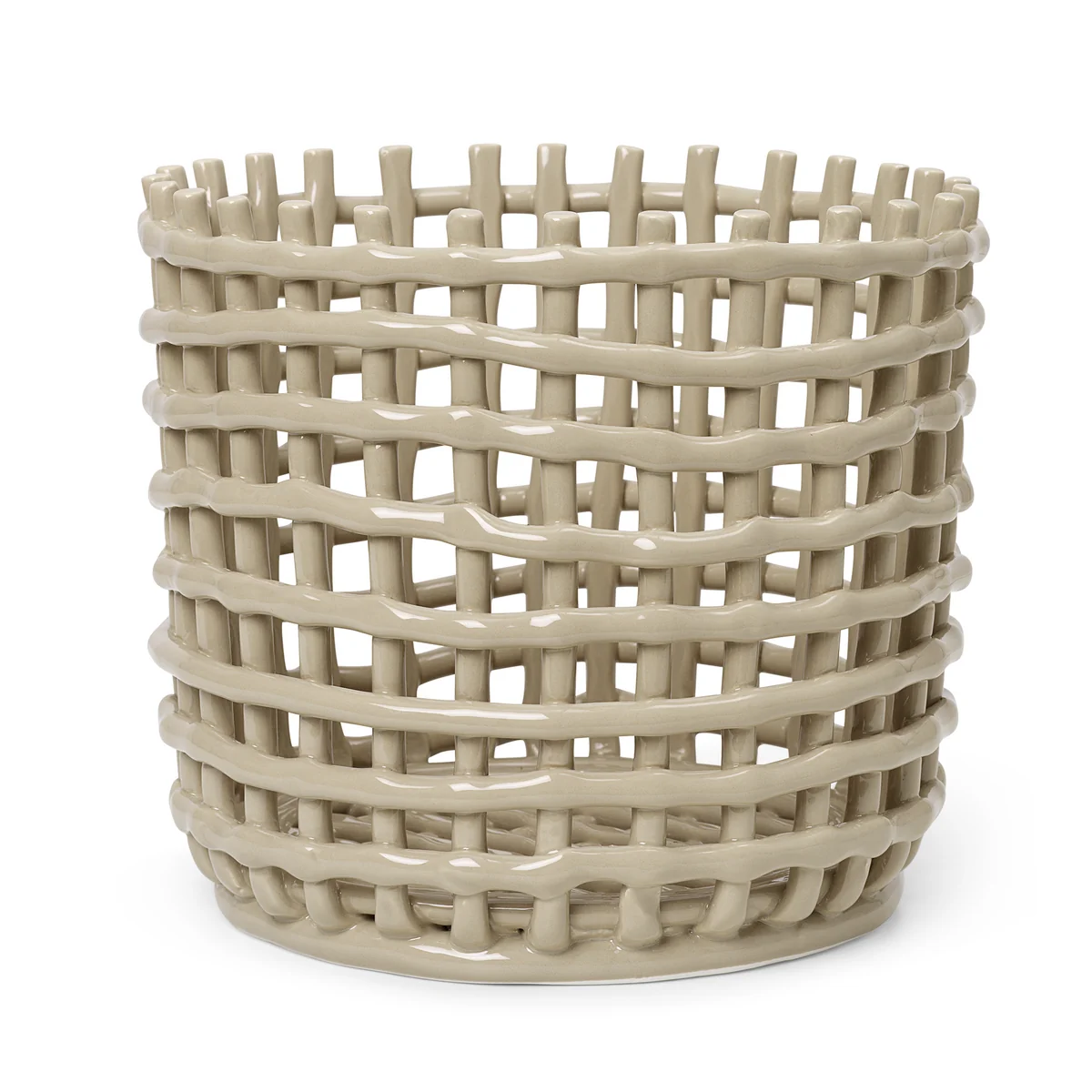 La corbeille en céramique de Ferm Living est une réinterprétation raffinée de la vannerie traditionnelle et attire l'attention dans chaque ambiance. Les paniers tressés ont un air familier et, grâce à la céramique, ils ont en même temps un look inédit qui s'intègre de manière surprenante et multifonctionnelle dans chaque pièce.