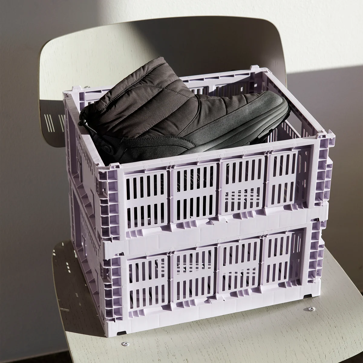 Le Colour Crate Panier recycled de HAY est une pièce spéciale de la série du même nom de boîtes de rangement multifonctionnelles disponibles dans une variété de couleurs et de tailles différentes. Avec un design aéré et empilable, les caisses sont sûres pour une utilisation avec des aliments.