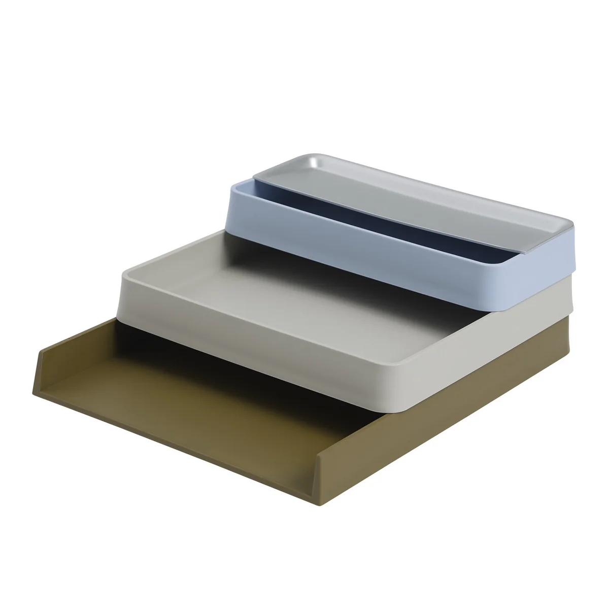 Les plateaux Arrange Desktop Organizer de Muuto séduisent par leur design configurable et leur caractère ludique. Leurs lignes raffinées, inspirées de l'architecture contemporaine, apportent une fonctionnalité élégante et de l'ordre au bureau, que ce soit à la maison ou au travail.