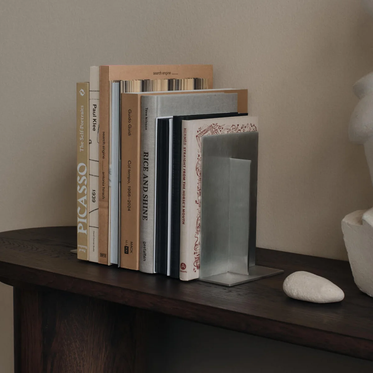 Le serre-livres Lager de Ferm Living apporte une élégance calme et industrielle aux étagères grâce à ses formes claires et sa surface brossée. Le design géométrique pose des accents structurants et confère à chaque bibliothèque une note architecturale. Qu'il soit utilisé de manière fonctionnelle ou arrangé comme un objet stylisé, le serre-livres allie force visuelle et expressivité discrète et s'intègre harmonieusement dans les intérieurs modernes.