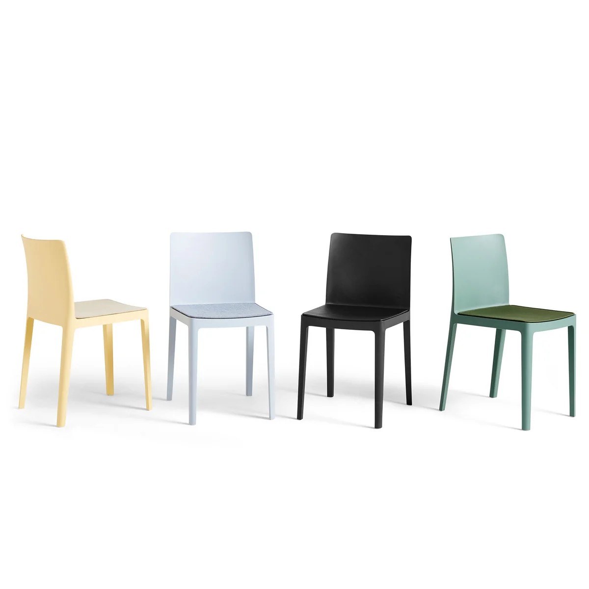 Les coussins d'assise de la chaise Élémentaire Chair by HAY offrent un confort supplémentaire et peuvent être placés comme un beau contraste sur l'assise de la chaise. Les coussins d'assise sont disponibles avec des housses en tissu ou en cuir dans une variété de couleurs. Les coussins d'assise pour l'extérieur sont fabriqués dans un tissu élastique et hydrofuge qui résiste parfaitement au vent et aux intempéries.