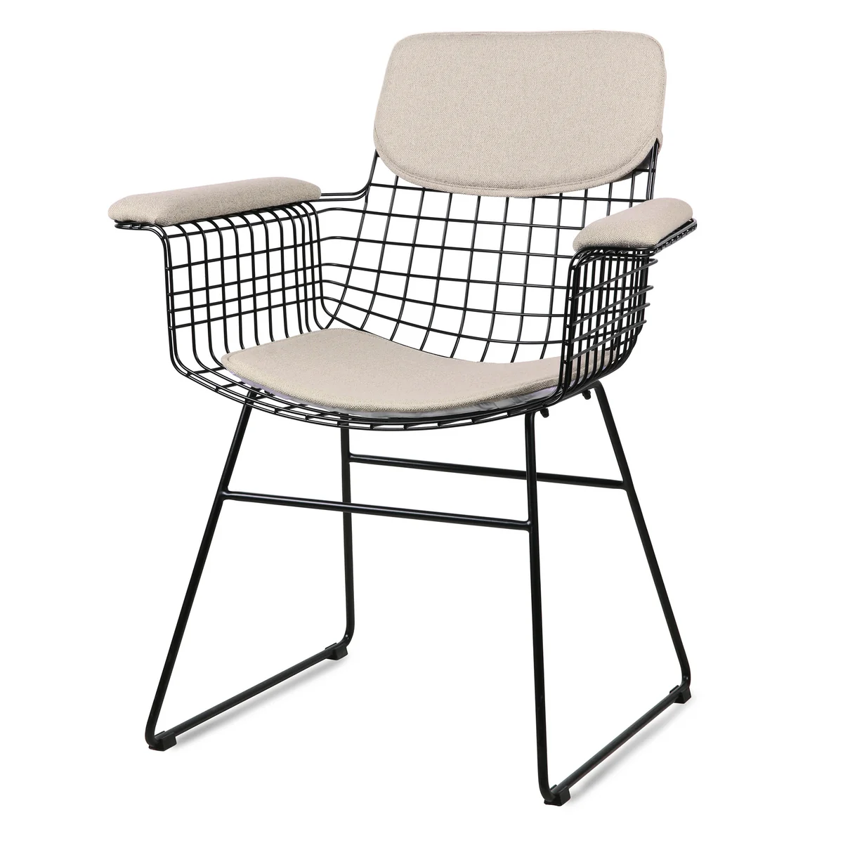 Le coussin pour le Wire Arm Chair de HKliving apporte un confort supplémentaire. Le set de coussins se compose d'un coussin pour l'assise, d'un coussin pour le dossier et de deux coussins pour les accoudoirs. Fabriqué en coton, polyester et mousse confortable. Disponible en différentes couleurs.