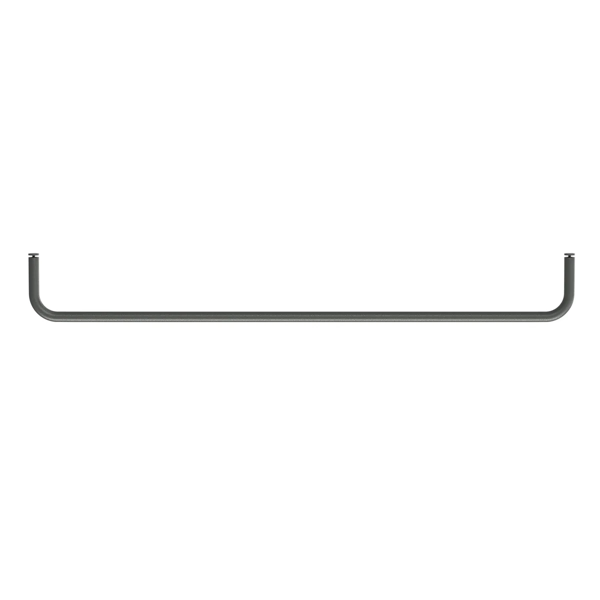 La barre s'accroche simplement dans le métal perforé des étagères. Elle est fabriquée en métal et est disponible en différentes couleurs et longueurs.