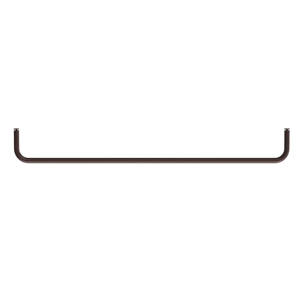 La barre s'accroche simplement dans le métal perforé des étagères. Elle est fabriquée en métal et est disponible en différentes couleurs et longueurs.