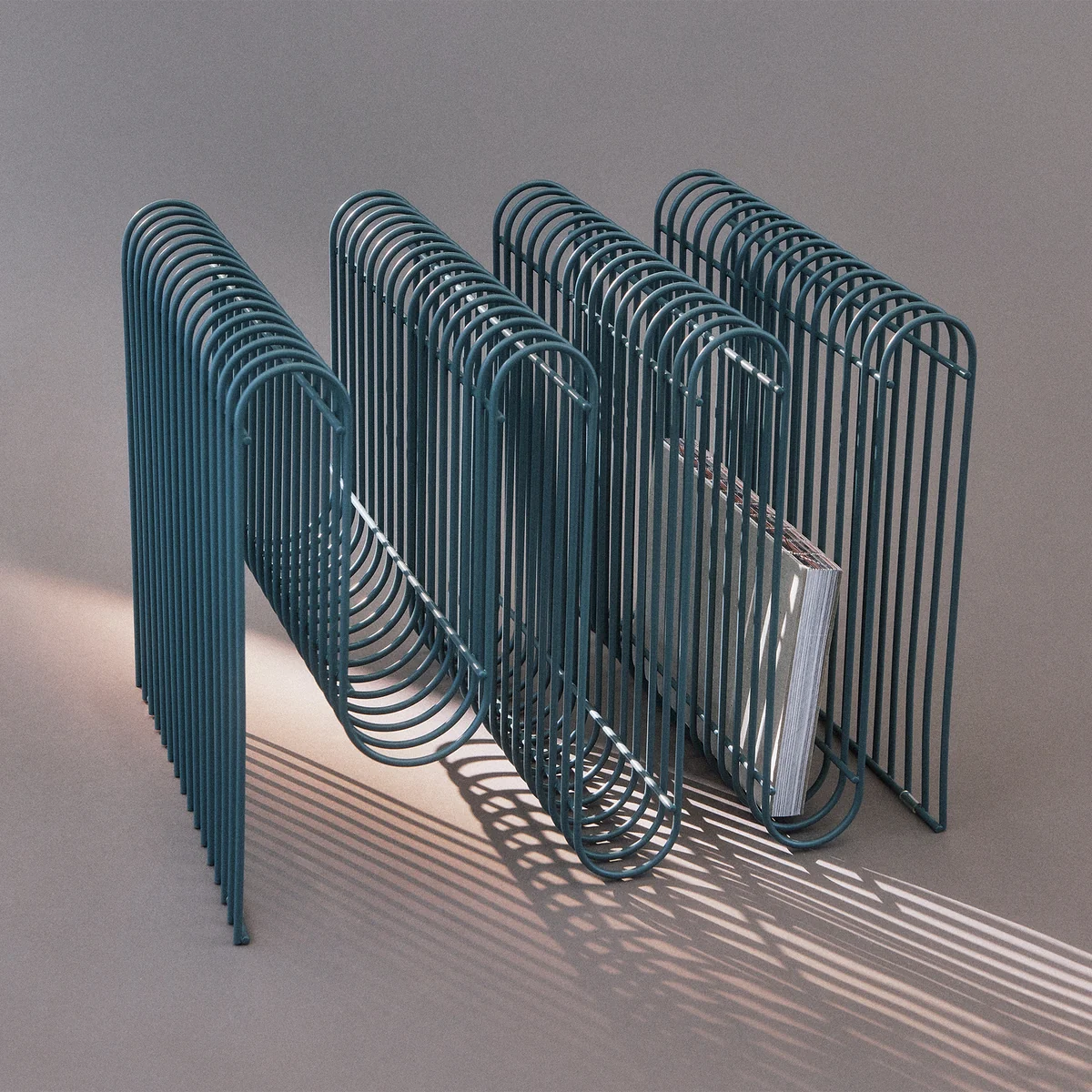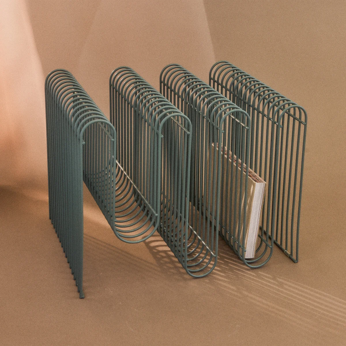 Le Curva Porte-magazines de AYTM se caractérise par sa forme ondulée, qui allie fonctionnalité et esthétique de manière unique. Le support est fabriqué à partir de nombreux fils de fer qui, une fois assemblés, forment un ensemble cohérent mais léger et aérien.