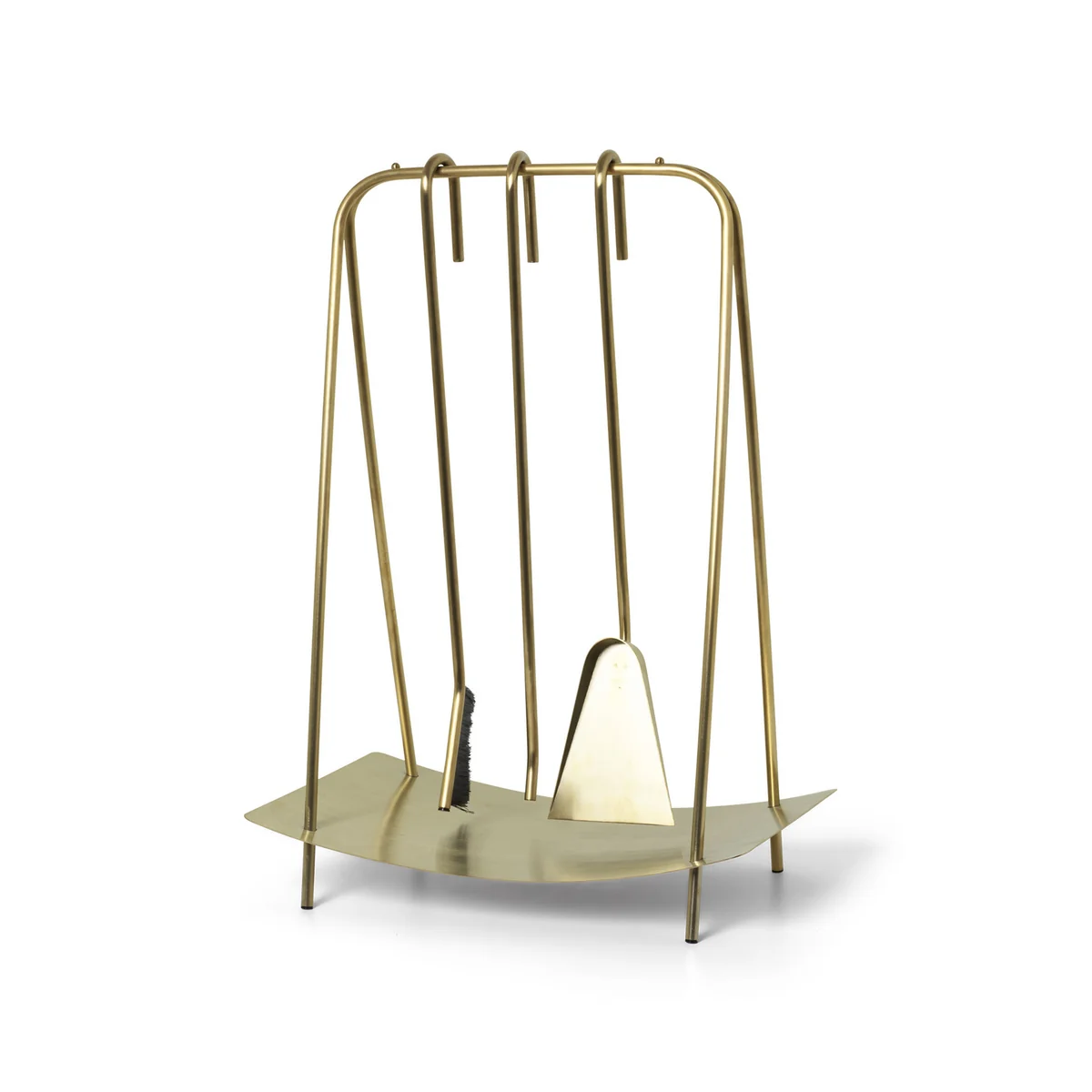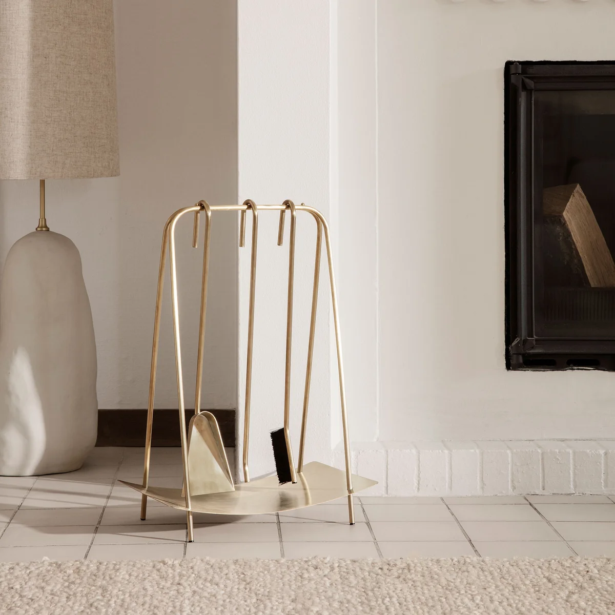 La coutellerie de cheminée Port fireplace de Ferm Living s'inspire de la joaillerie, est pratique et se fait décorative à côté de la cheminée. L'ensemble se compose d'un appareil de chauffage, d'une pelle, d'un balai et d'un support qui contient les ustensiles. Avec des formes élégantes mais organiques et des lignes délicates, la coutellerie de cheminée attire l'attention et garde la cheminée et la zone devant elle propre.