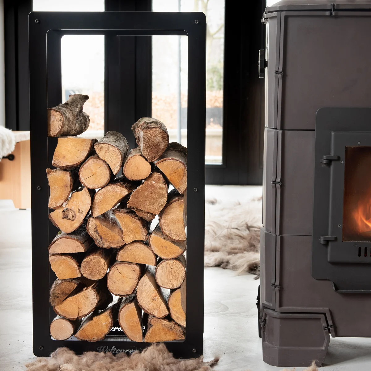Pour garantir la sécurité de l'étagère pendant le transport, le chariot est équipé d'un support spécial qui convient également au transport de l'ovale extérieur. Bien entendu, d'autres marchandises peuvent également être transportées. Ainsi, le bois est toujours à portée de main et crée une atmosphère chaleureuse et accueillante.