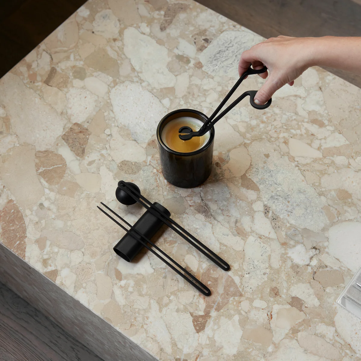 Le kit d'extinction des bougies Clip de Audo est l'accessoire parfait pour tout amateur de bougies. L'accessoire empêche la suie et prolonge la durée de combustion de la bougie, tandis qu'en tant qu'outil stylé, il devient rapidement un point de mire dans chaque intérieur. Avec ses couleurs classiques et sa silhouette fine et élégante, l'outil apporte une superbe touche finale lorsque l'ambiance des bougies touche à sa fin. Le kit d'extinction des bougies est facile à utiliser et, avec son aspect délicat, il convient parfaitement comme cadeau pour les proches.