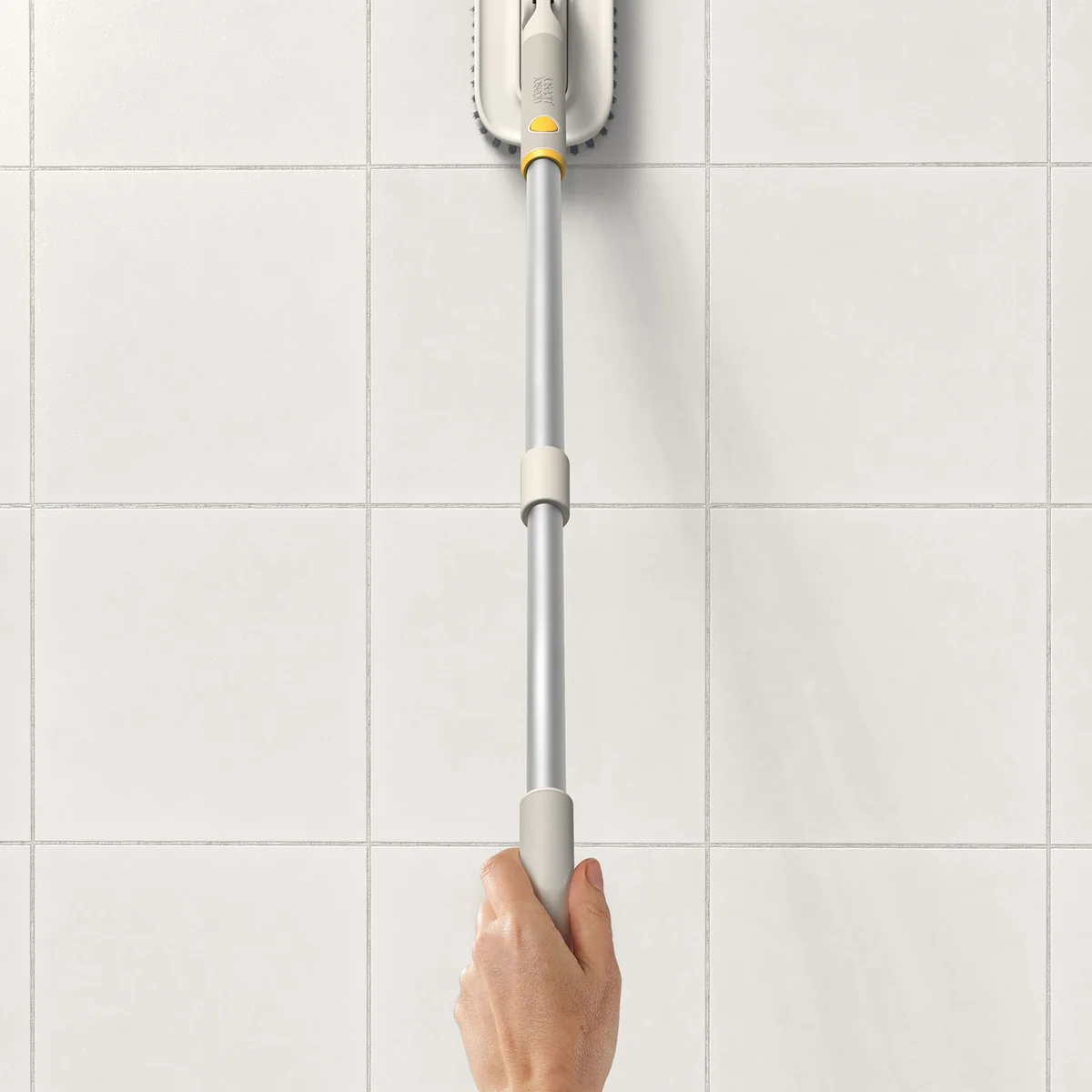 La perche télescopique CleanTech de Joseph Joseph est le complément parfait des ustensiles de nettoyage. Grâce à sa conception pratique à clipser, la perche se connecte facilement aux autres accessoires CleanTech et offre une portée maximale grâce à sa fonction extensible - idéale pour les endroits difficiles d'accès ou les surfaces élevées. La poignée antidérapante et la tige en aluminium, légère mais solide, garantissent une manipulation confortable.