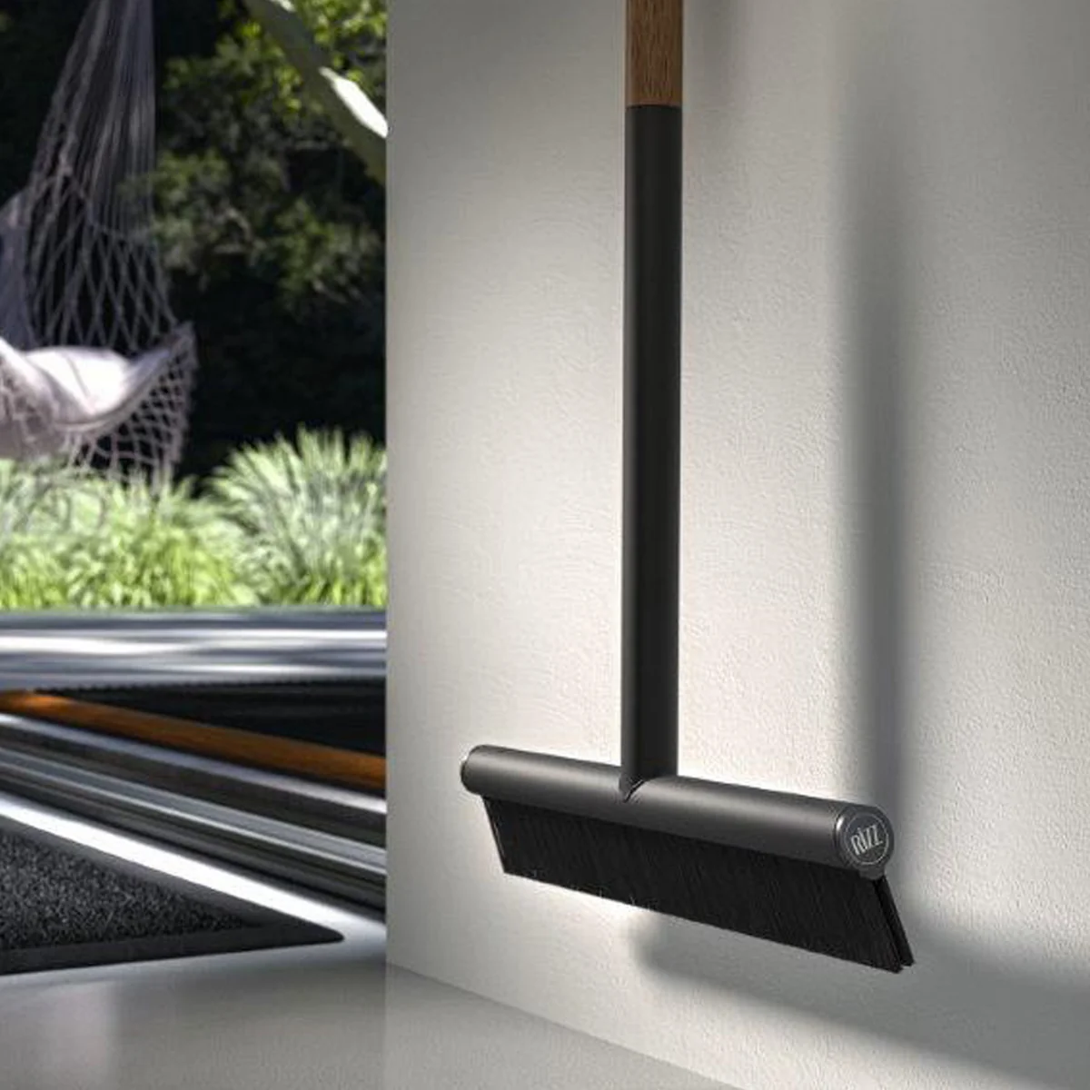 Rizz fabrique des brosses aux Pays-Bas depuis 1941. Le balai de la Indoor Kehrbesens est fabriqué en teck massif et en aluminium thermolaqué de différentes couleurs. Le manche tient parfaitement les brosses remplaçables et un embout protège les meubles et les murs. Le balai peut être accroché à un crochet au mur de manière pratique et peu encombrante.