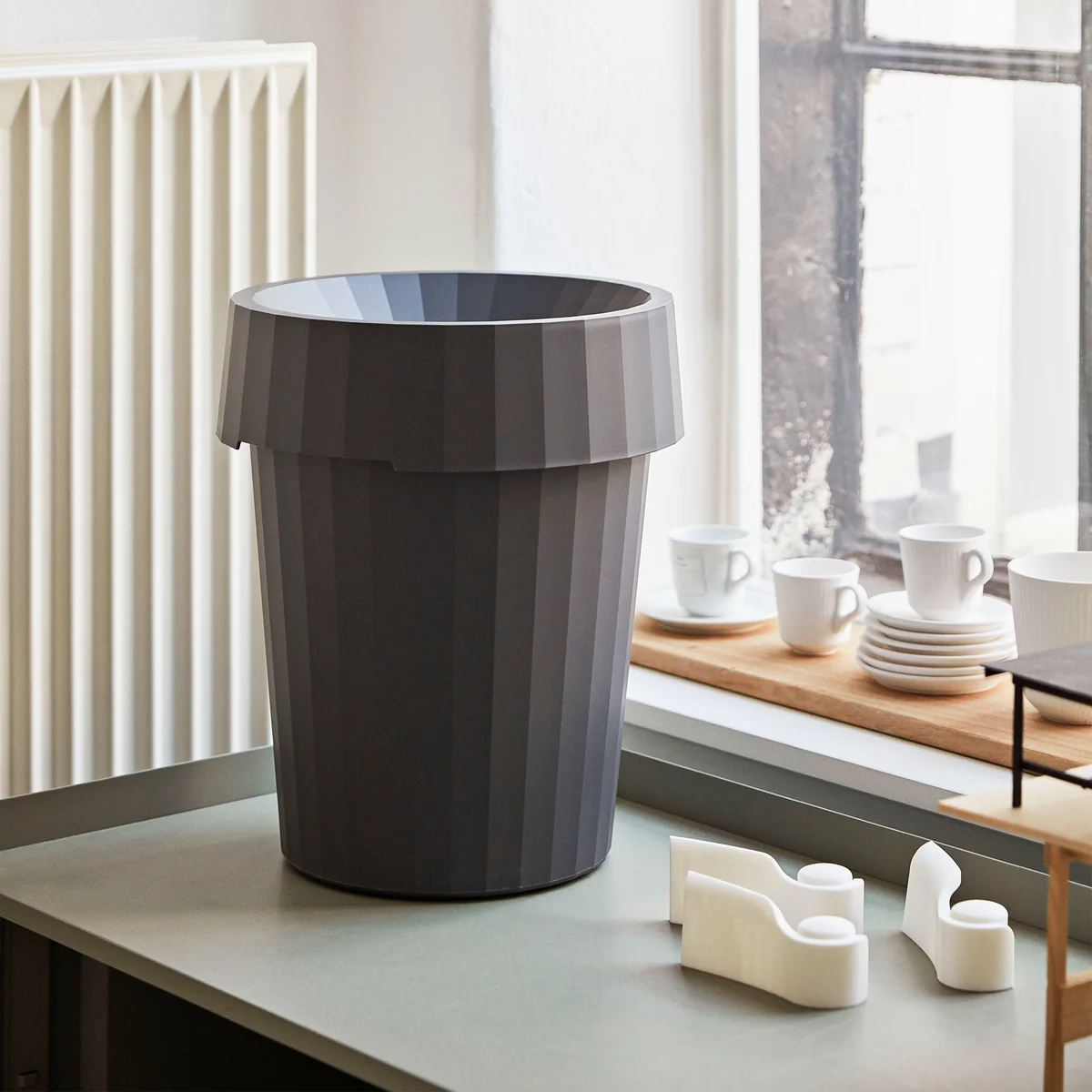 Le Shade Bin de HAY été conçu par Thomas Bentzen et convainc par sa silhouette claire et distinctive. La poubelle est faite de polypropylène durable avec un couvercle assorti et est disponible en différentes couleurs. Son extérieur ondulé donne à la poubelle d'une capacité de 14 l un aspect décoratif et a fière allure sous le bureau, dans la chambre des enfants, dans la salle de bain et aussi dans la cuisine. Grâce à ses différentes couleurs, il se fond bien dans n'importe quel environnement.
