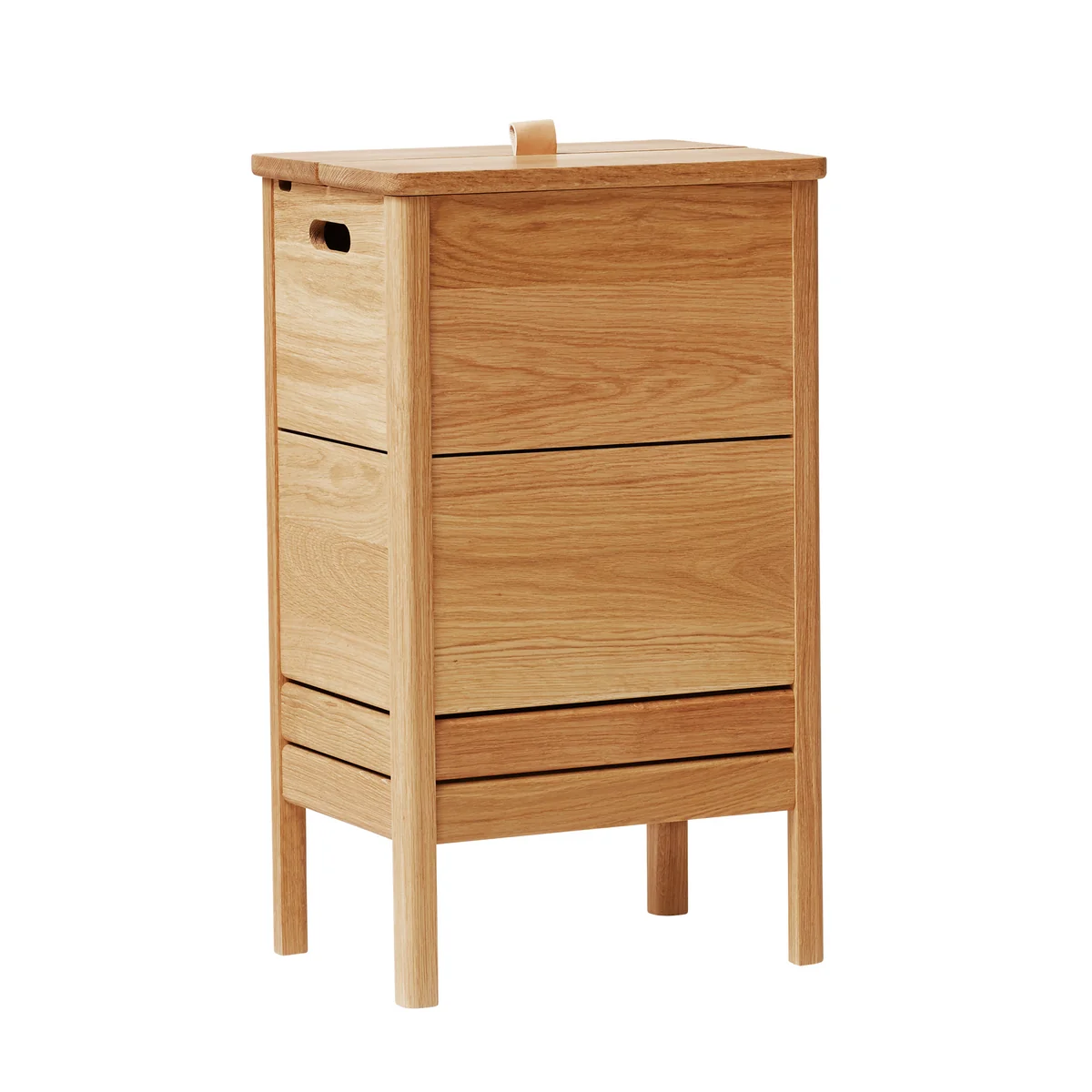 Le A Line panier à linge de Form & Refine est un beau panier à linge entièrement en bois qui impressionne par ses caractéristiques pratiques : le couvercle peut être soulevé à l'aide d'une boucle en cuir et reste ouvert pour remplir la boîte de linge. Deux fentes dans le panier à linge assurent une bonne ventilation du linge. Les poignées latérales rendent le panier pratique à transporter dans la maison. Grâce à ses pattes basses, le panier apporte une élégante légèreté à la pièce.