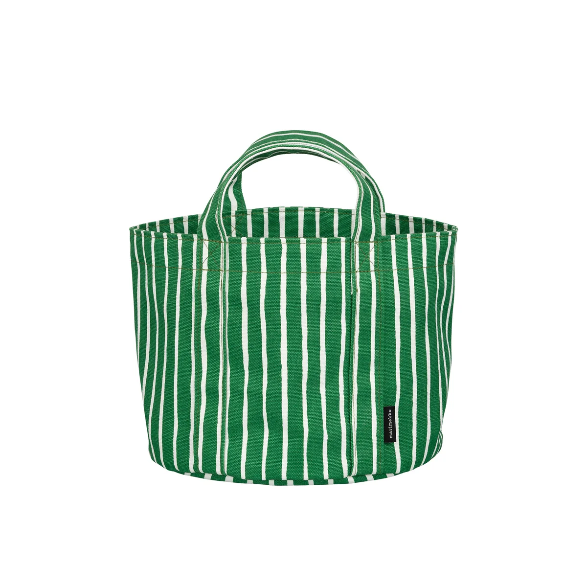 Le panier de rangement à deux anses est fabriqué en toile de coton bio robuste et arbore le motif emblématique "Motif". Piccolo -motif en forme de cœur. Il a été conçu en 1953 par Vuokko Eskolin-Nurmesniemi et imprimé à Helsinki.