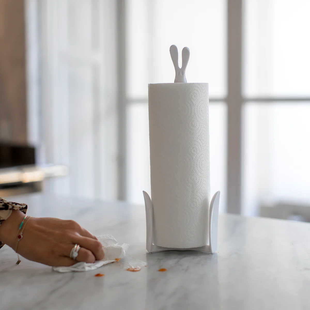 Le Roger Le porte-rouleau de cuisine de Koziol enchante par son design ludique : un petit lapin contrôle le papier avec ses pattes et veille à ce que les feuilles ne se déroulent pas toutes seules. Roger Il convient parfaitement aux petites cuisines et attire l'attention sur chaque table à manger.