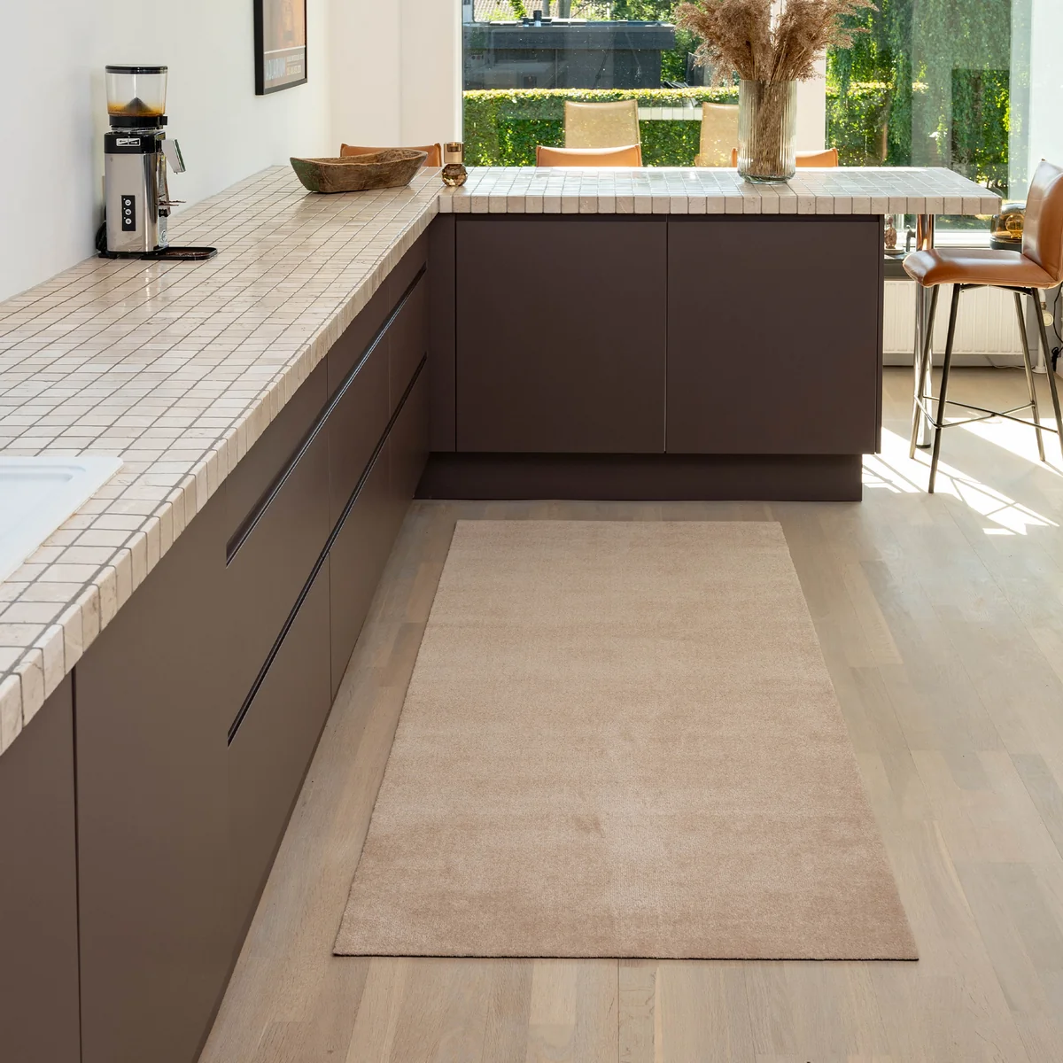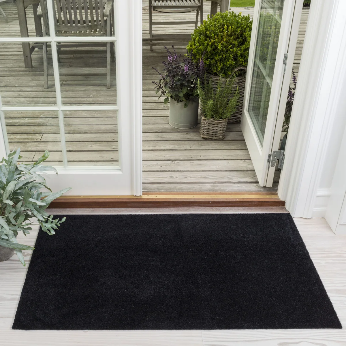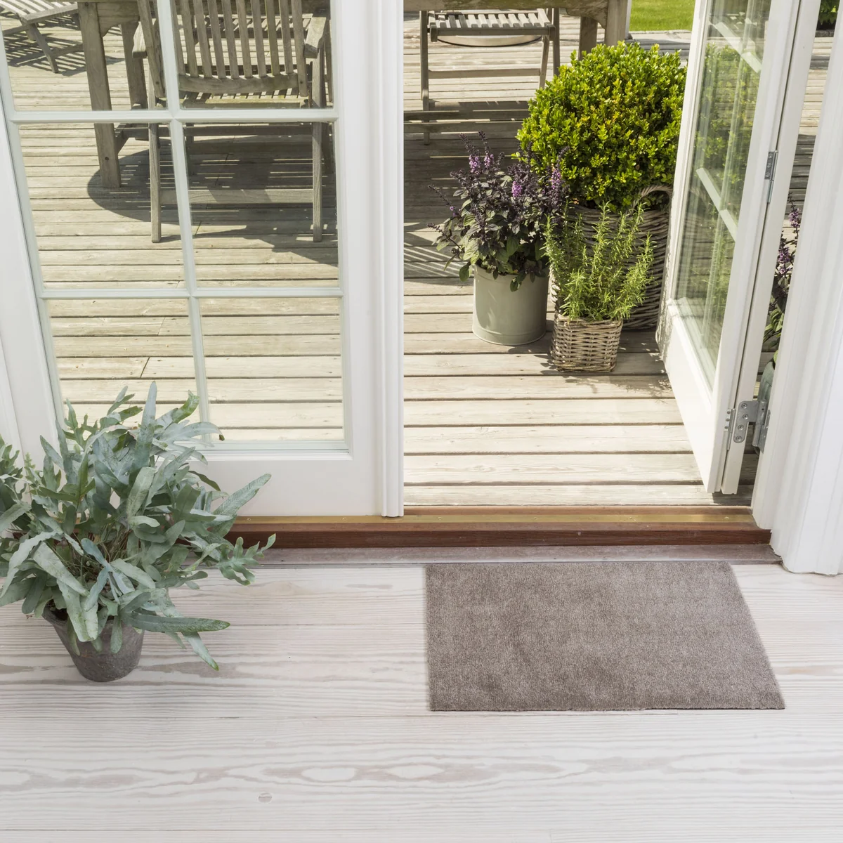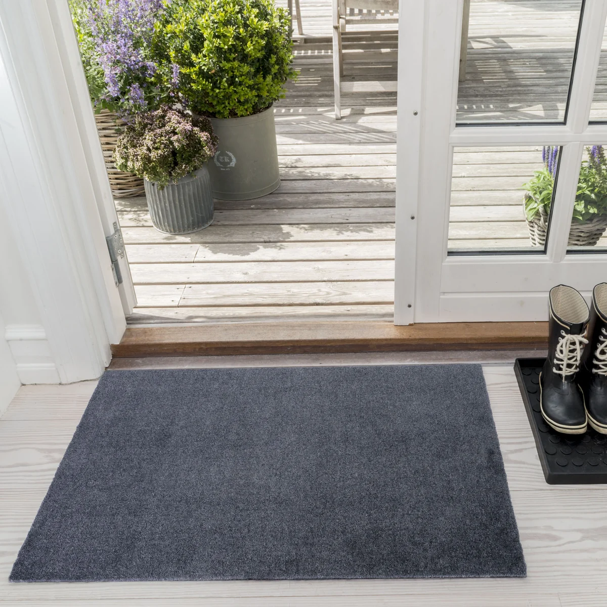Le tapis absorbe facilement l'humidité et la saleté et peut être aspiré ou rincé à l'eau selon les besoins et supporte un lavage en machine jusqu'à 30 °C. Le dos est en PVC, ce qui permet au tapis de rester stable et de ne pas glisser sur le sol.
