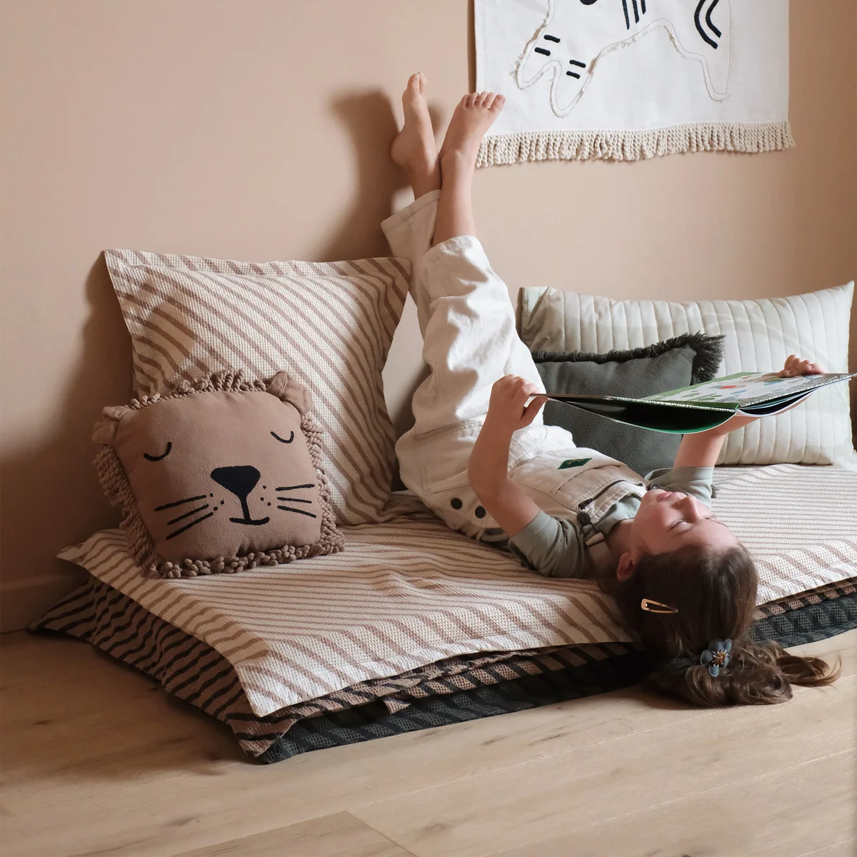 Le tapis de sol Landscape de Nobodinoz forme un coin de jeu et de lecture parfait dans la chambre d'enfant. Les tapis peuvent être alignés les uns à côté des autres pour agrandir la surface. Avec des motifs audacieux et des textures variées, le tapis de sol est intemporel et donne à chaque chambre d'enfant des accents beaux et décoratifs inspirés des paysages.