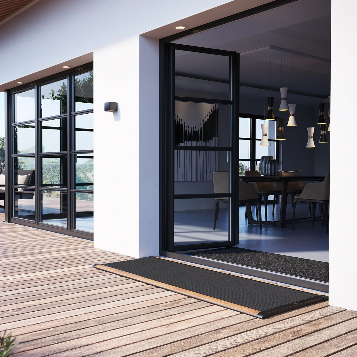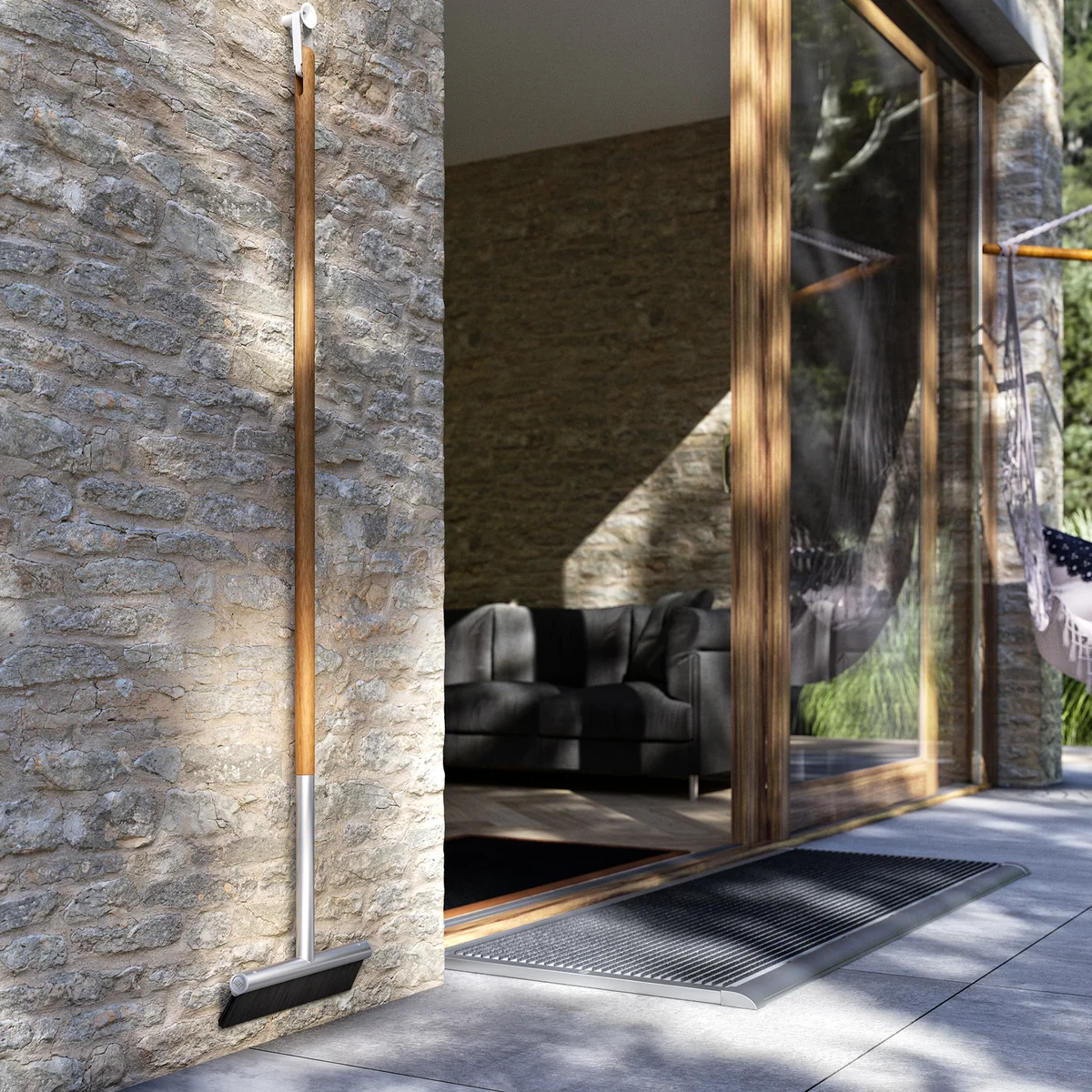 Le paillasson double porte Outdoor du label danois Rizz enthousiasme par sa fonctionnalité extrêmement élevée. Le paillasson élimine le sable, la saleté et la poussière comme aucun autre paillasson comparable. Les matériaux indésirables qui adhèrent à la plante des pieds tombent tout simplement à travers les ouvertures des différentes bandes. Mais le véritable cœur du paillasson est la brosse en filaments de nylon résistants aux UV et en acier inoxydable.