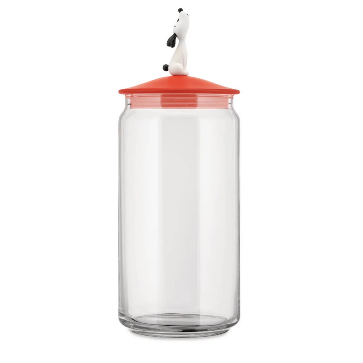 Le récipient Lulà pour les aliments pour chiens de by Alessi est dédié au monde des animaux de compagnie et ajoute un élément ludique et émotionnel à un simple objet quotidien : un petit chien sur le couvercle qui sert également de poignée.
