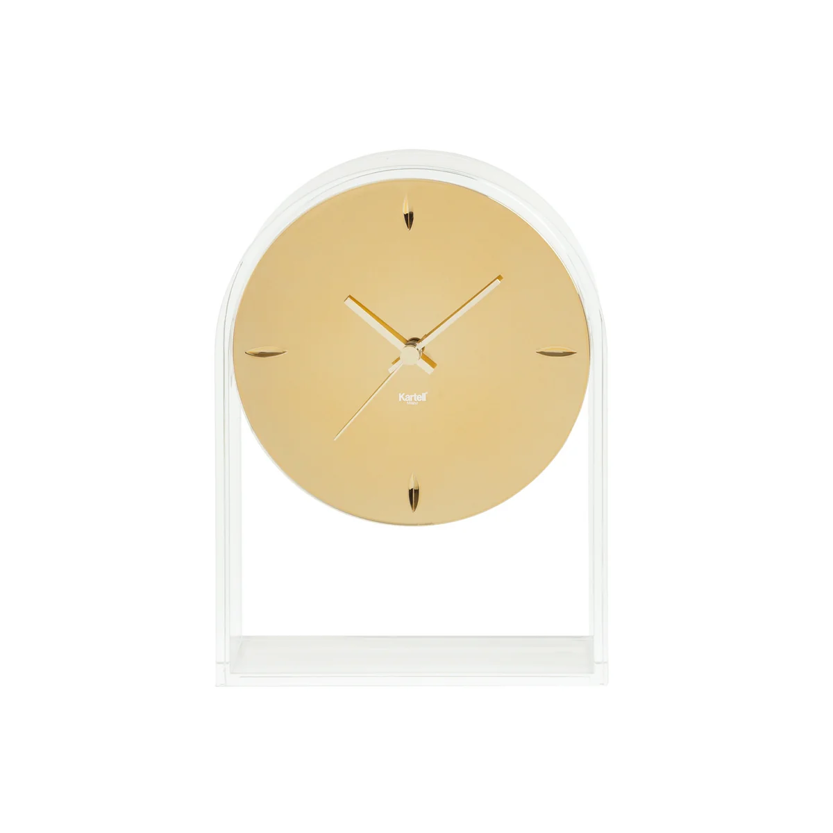L’horloge de table Air du Temps de Kartell a été conçue par le designer catalan Eugeni Quitllet qui a attaché de l’importance à l’extravagance et la légèreté lors de son travail. Le cadran brillant en différentes couleurs indique l’heure alors que le cadre puriste est fabriqué en technopolymère thermoplastique qui assure un aspect quasi en apesanteur grâce à sa transparence.