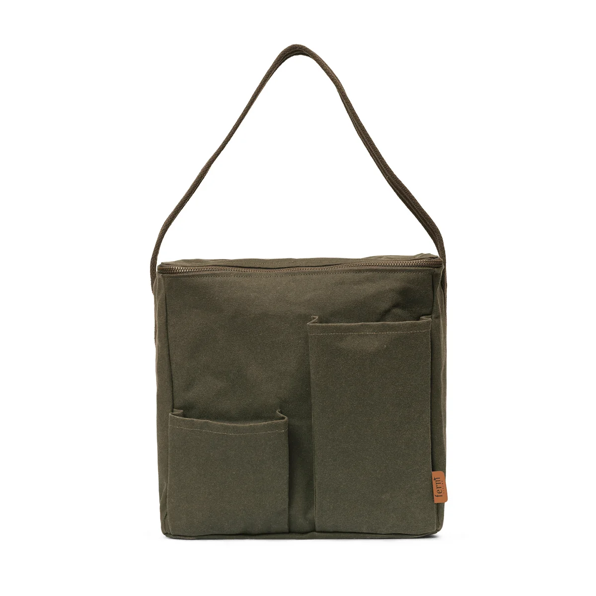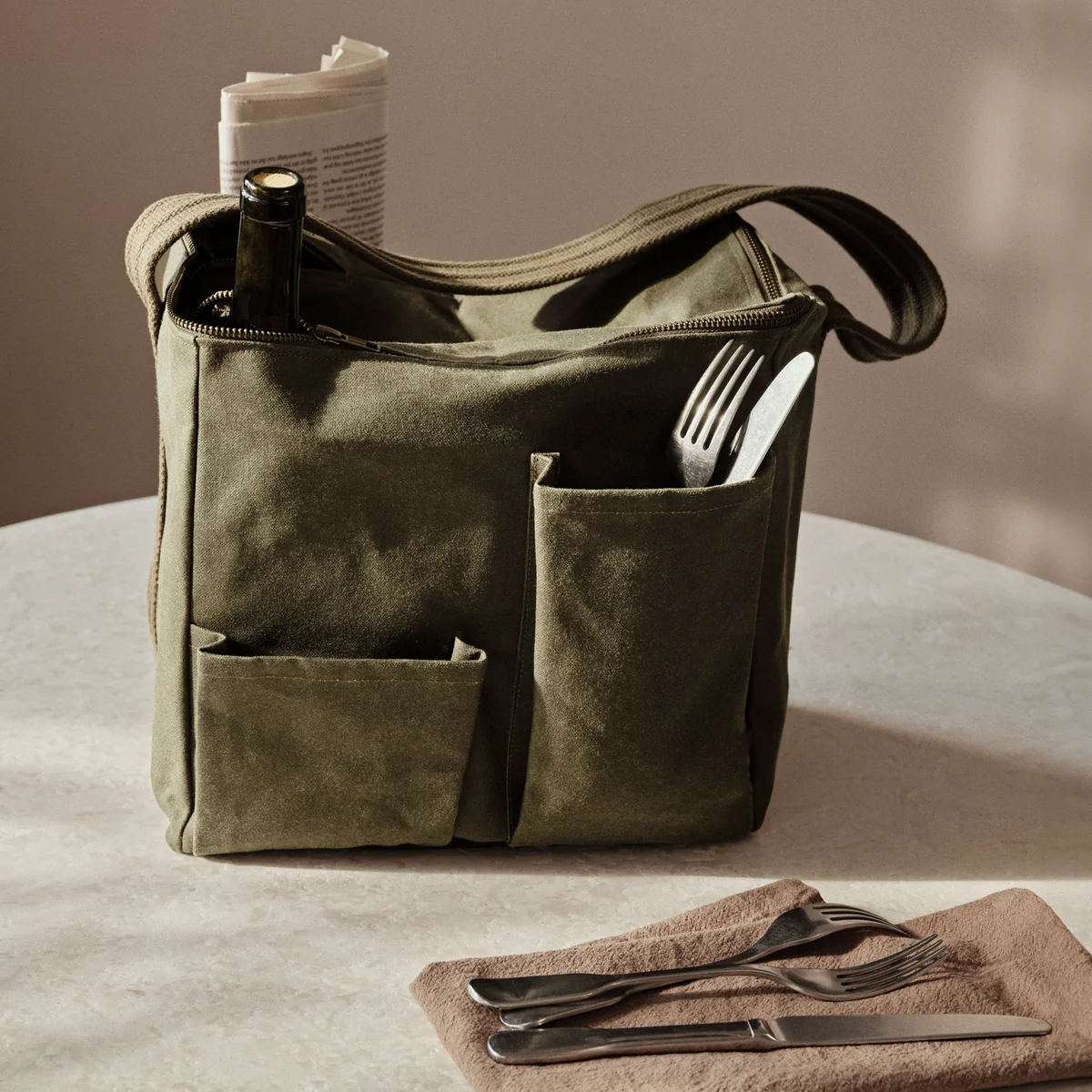 Le Bark sac à pique-nique de Ferm Living est le compagnon idéal pour les aventures en plein air. Fabriqué à partir de 100 % de coton biologique certifié GOTS, ce sac n'est pas seulement respectueux de l'environnement, il garantit également les plus hauts standards de qualité et de durabilité. Le matériau en coton est soigneusement ciré et offre une couche de protection contre l'humidité et assure la durabilité lors des excursions.