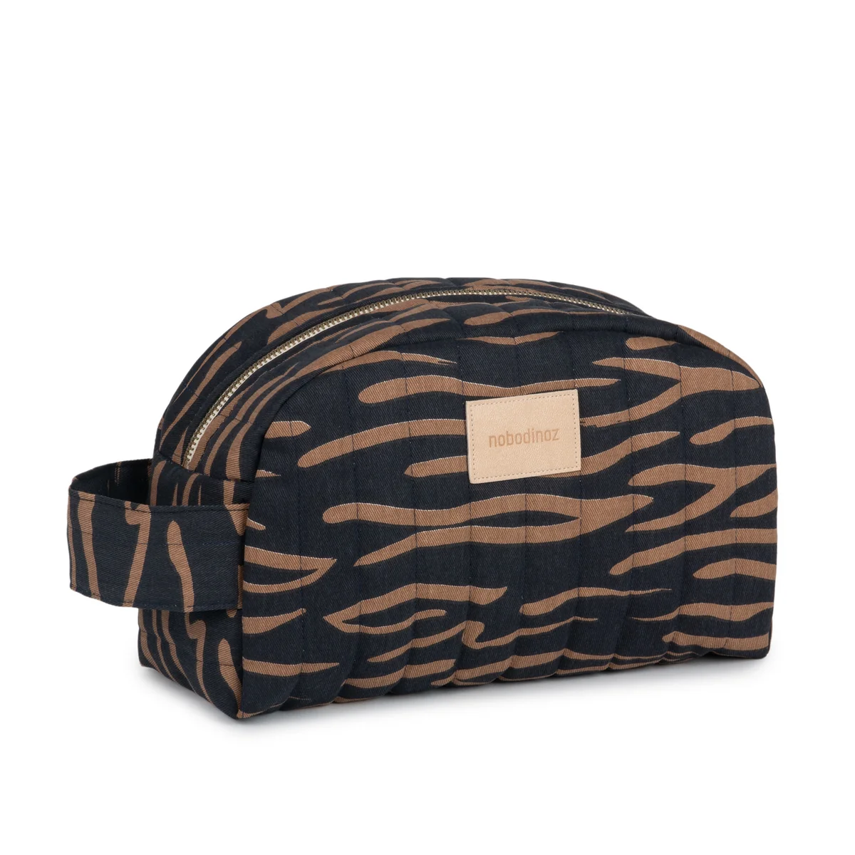 La trousse de toilette Hyde Park du fabricant Nobodinoz permet de mettre de l'ordre d'une jolie manière. L'extérieur est fabriqué en coton bio imprimé et matelassé. La doublure intérieure est imperméable, de sorte que les produits d'hygiène et les accessoires de bébé peuvent être rangés sans problème. La petite poignée latérale permet de porter facilement le sac. La trousse de toilette se ferme avec une fermeture éclair. Fabriquée à Barcelone.