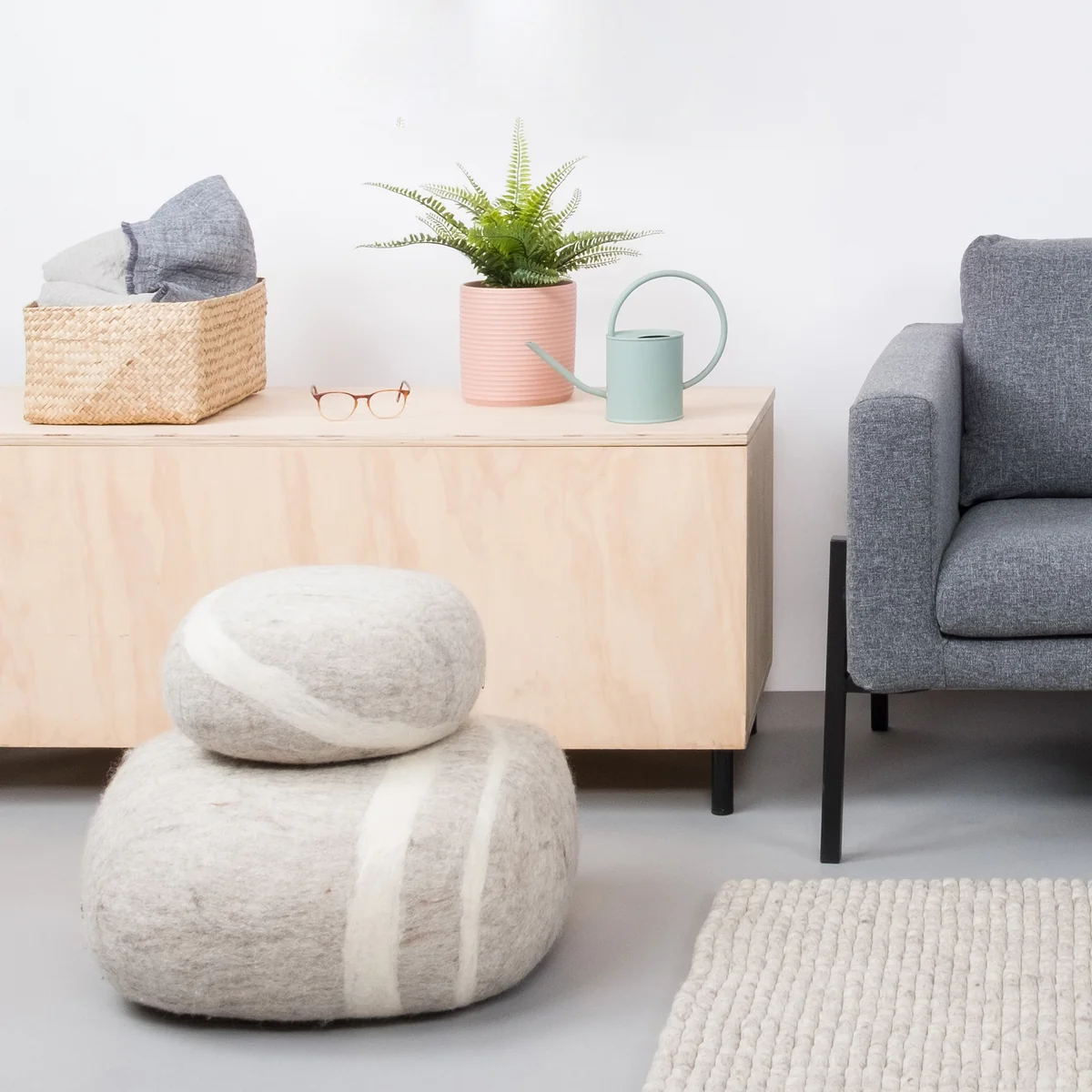 Pouf en feutre aspect pierre