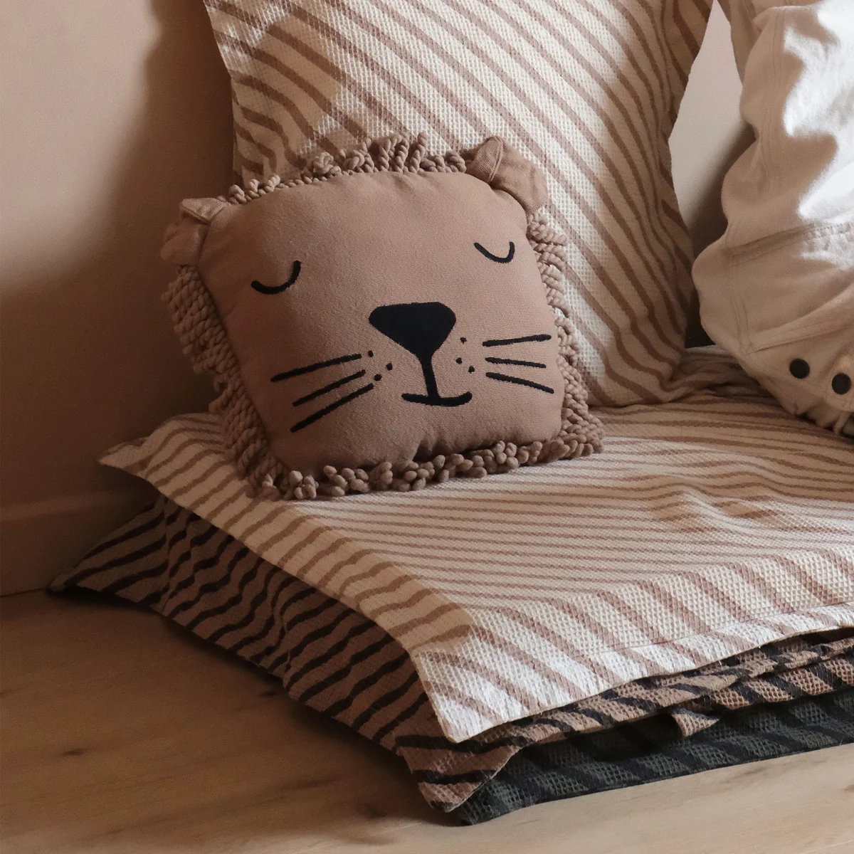 Avec les coussins animaux de Nobodinoz, les chambres d'enfants sont décorées de manière ludique et confortable. En forme de léopard, de lion ou de singe, les coussins attirent le regard dans la salle de jeux.