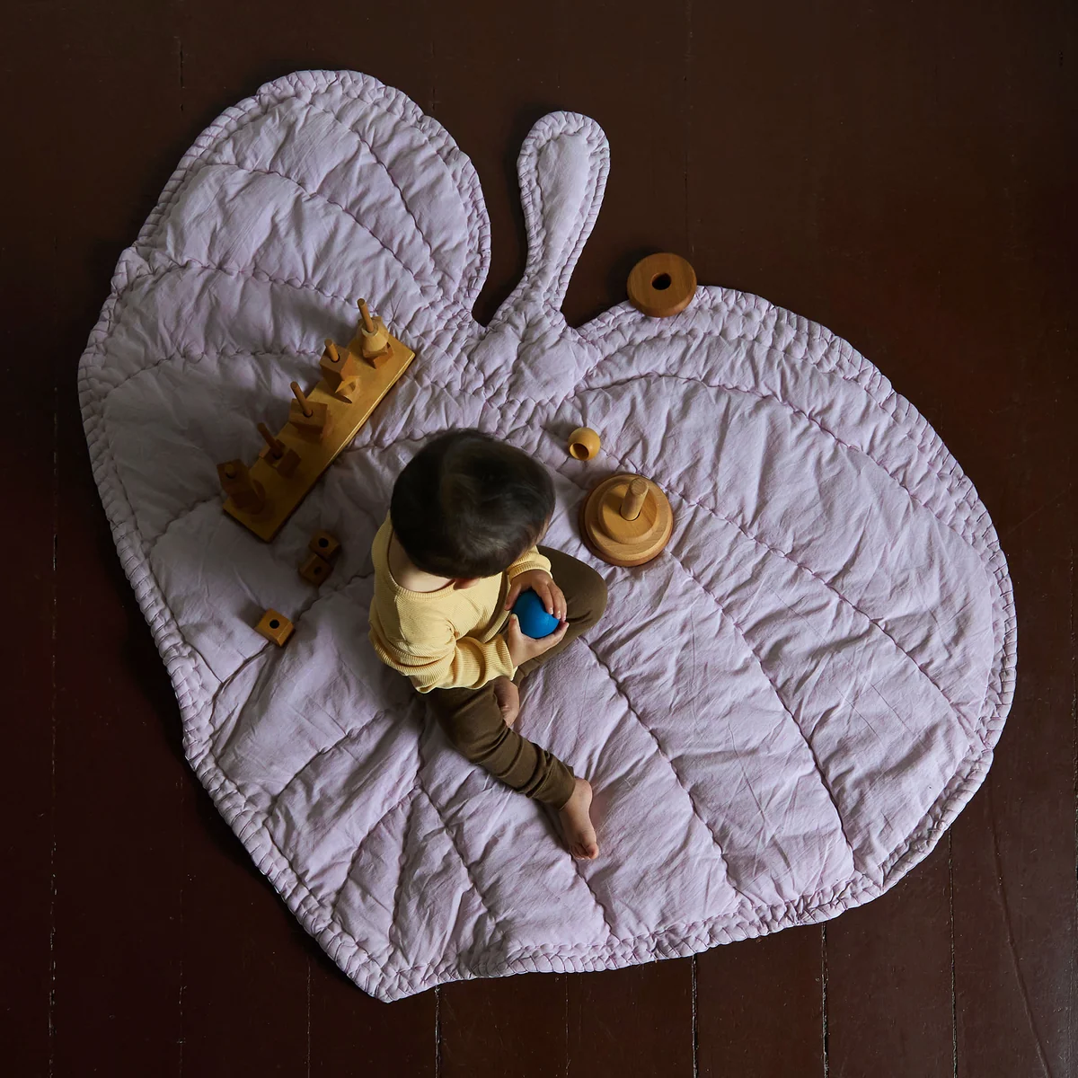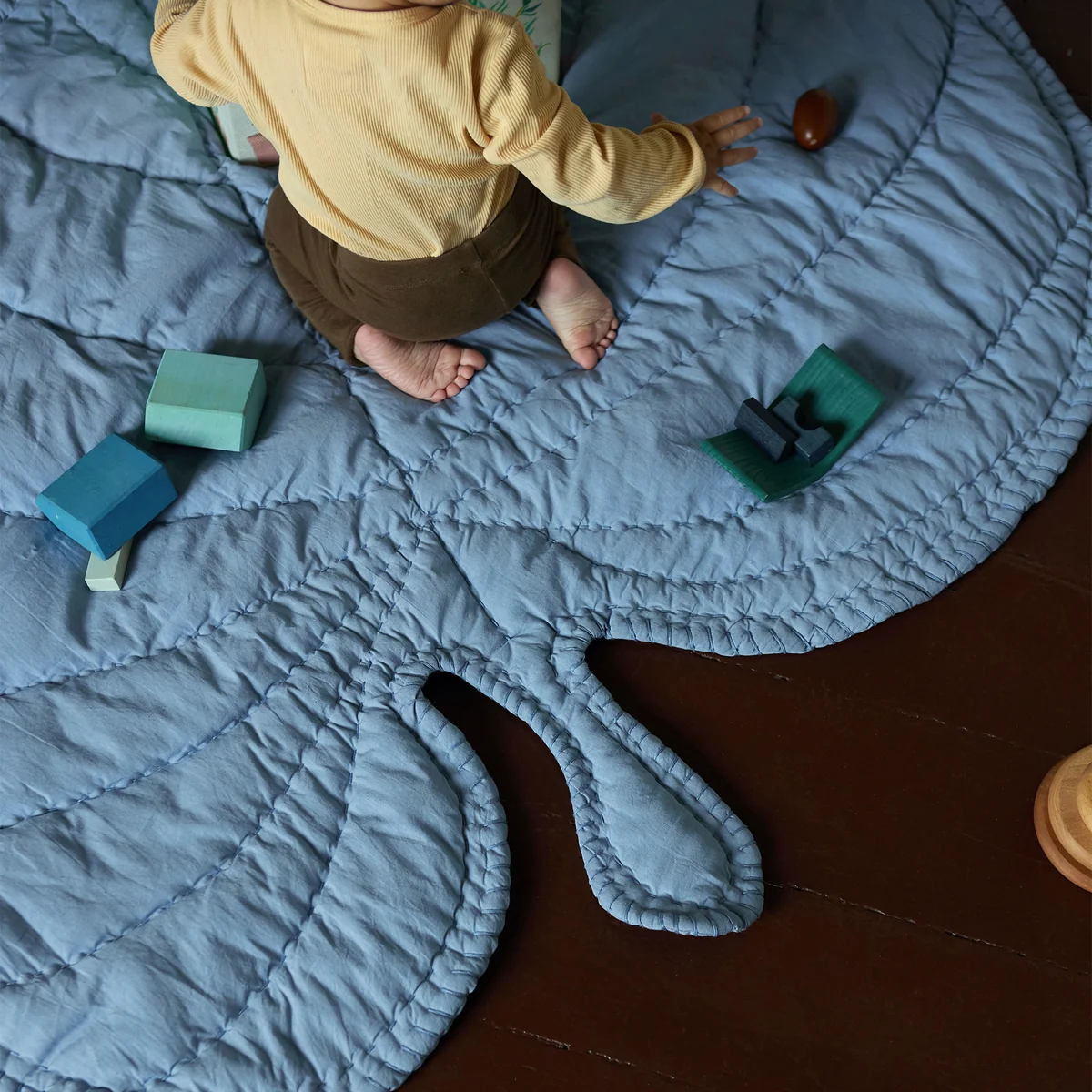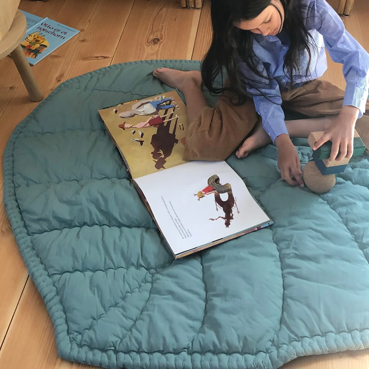 Le plafond de jeu Leaf de Nofred est un plafond pour enfants en coton de forme organique qui trouve sa place aussi bien sur le sol qu'au-dessus d'un canapé ou au bout d'un lit. En forme de feuille, la couverture est à la fois décorative et fonctionnelle. Les bébés peuvent être enveloppés dans la couverture et les jeunes enfants trouvent sur la couverture un endroit doux et confortable pour jouer et s'allonger. La sieste peut également être agréablement organisée sur la couverture.