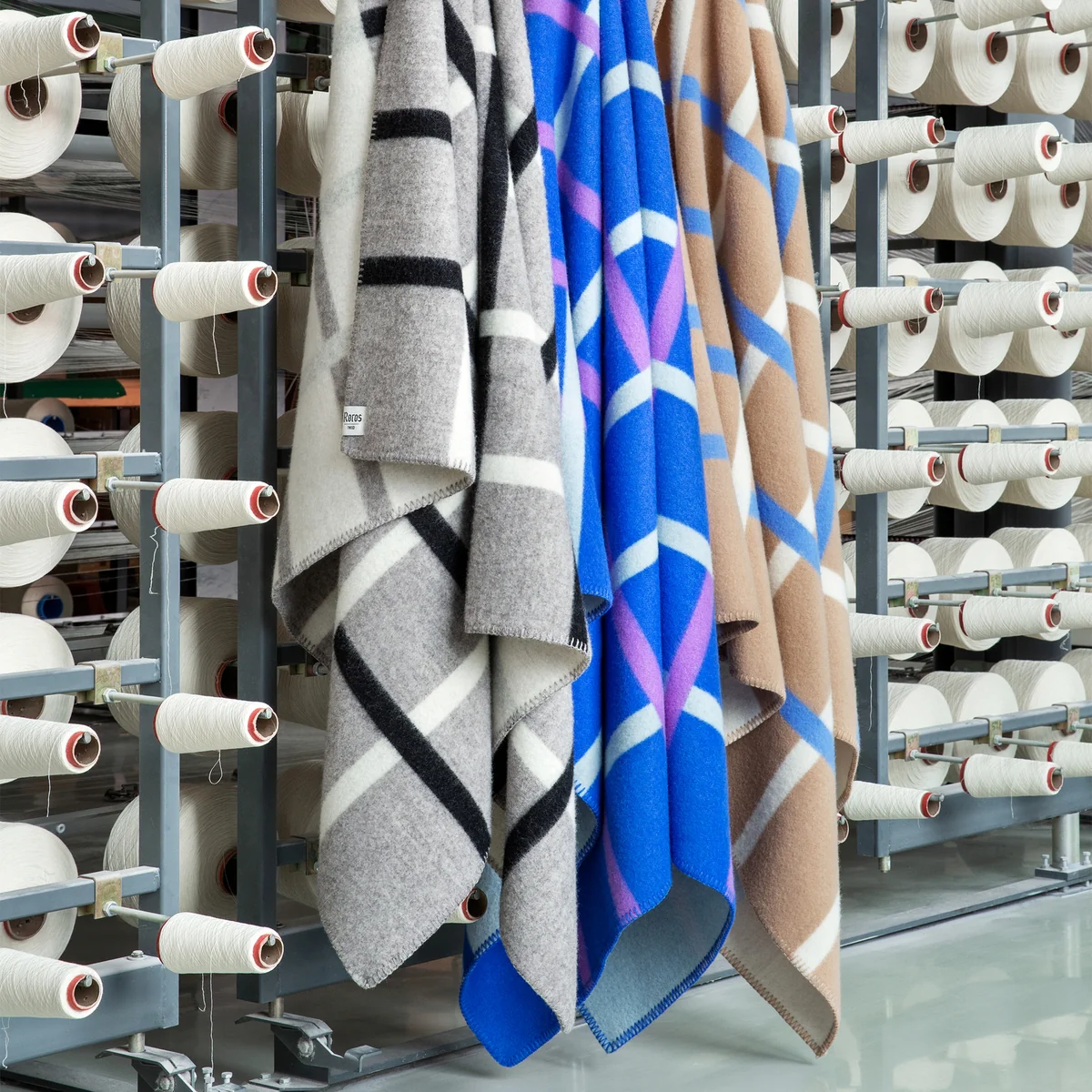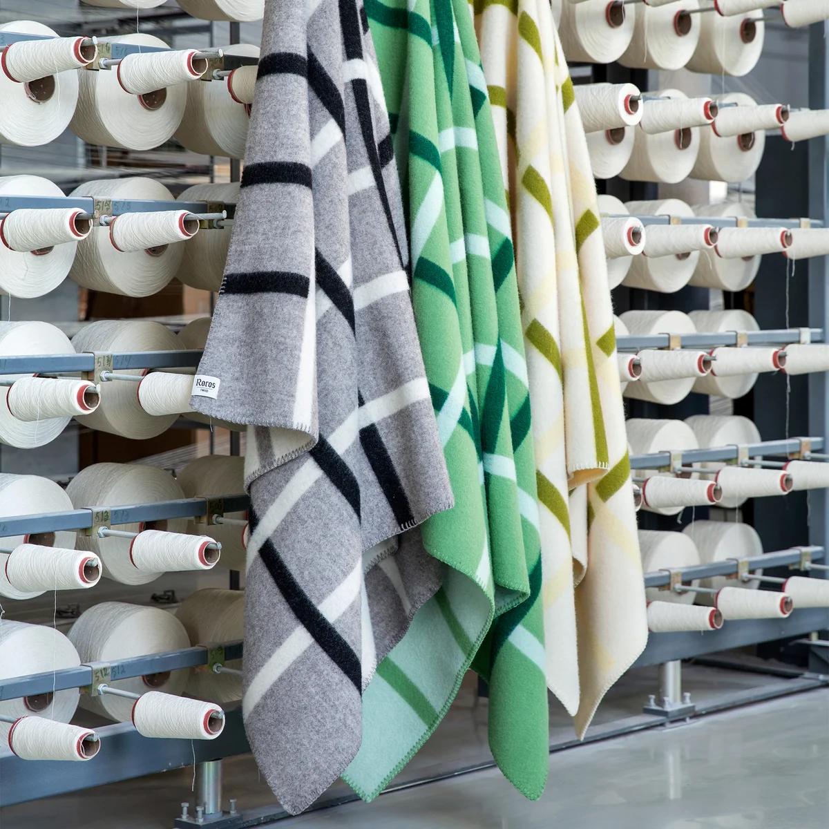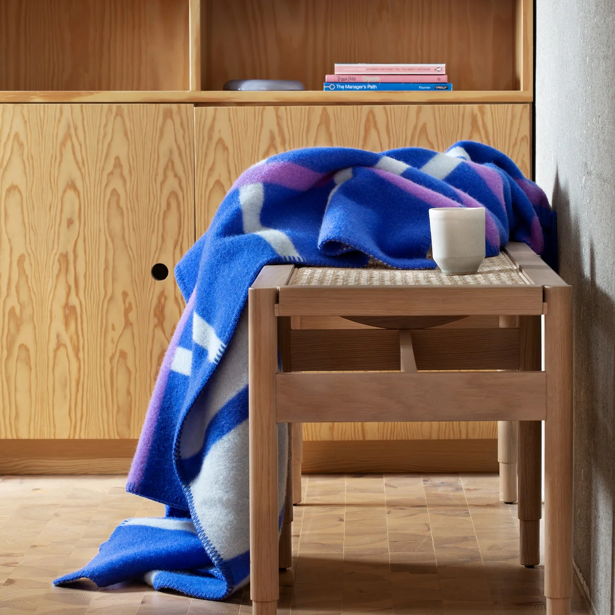 La collection Knut couverture en laine du designer Hallgeir Homstvedt pour Røros Tweed séduit par son design tramé à la fois simple et extrêmement noble. Knut Il s'inspire de la structure de base du tissage et fait se rencontrer dans sa trame étroite des lignes verticales et horizontales qui forment des nœuds et créent des effets de chevauchement dans des couleurs toujours différentes. Lorsque la Knut Les lignes de même couleur peuvent presque être perçues comme des vagues.