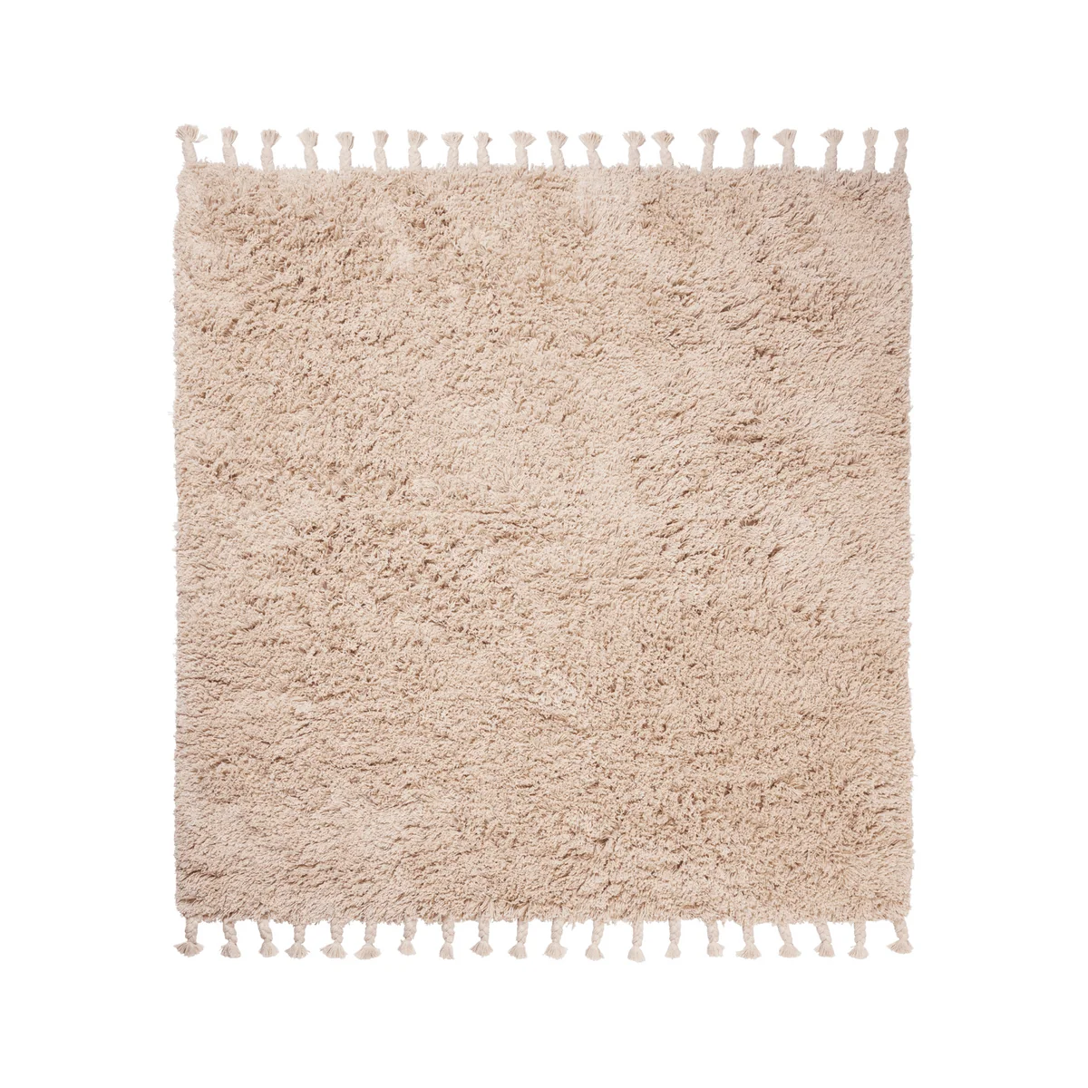 La série Ferm Living de tuftés à la main Amass Les tapis et carpettes en coton gardent les orteils et les pieds agréablement au chaud, de manière confortable. Les tapis à poils longs se caractérisent par des franges épaisses et tressées, réalisées avec amour, qui soulignent l'aspect artisanal.