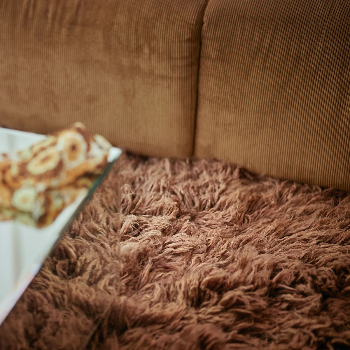 Le tapis Fluffy tapis de la maison HKliving confère à la pièce environnante une grande convivialité grâce à son design luxueux. Le tapis en laine tissé à la main offre une sensation douce et veloutée sous les pieds. Il est disponible en différentes tailles et couleurs.