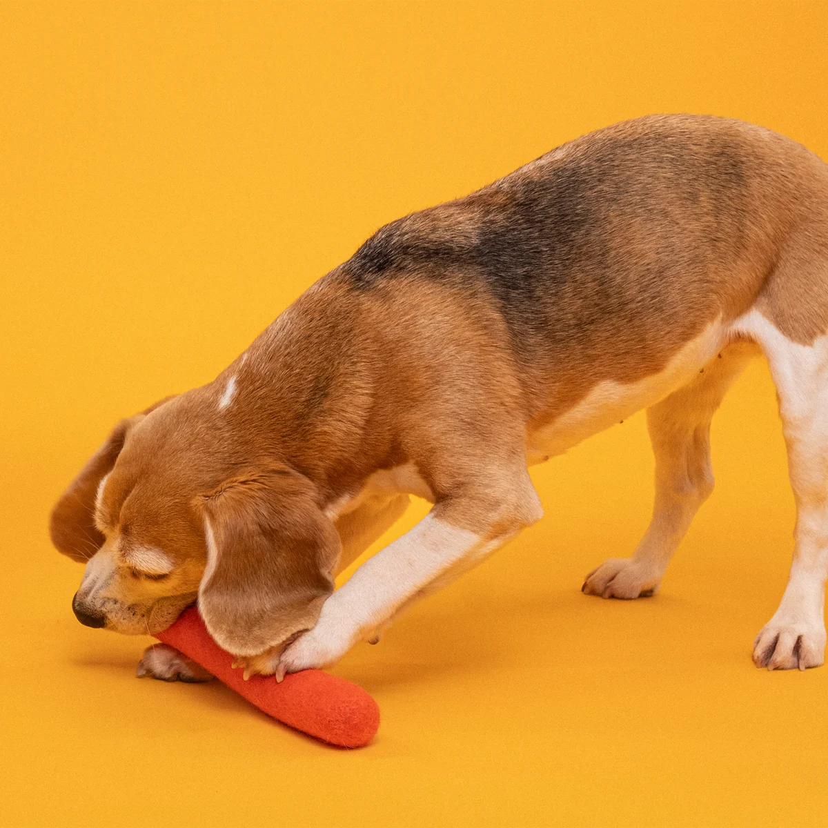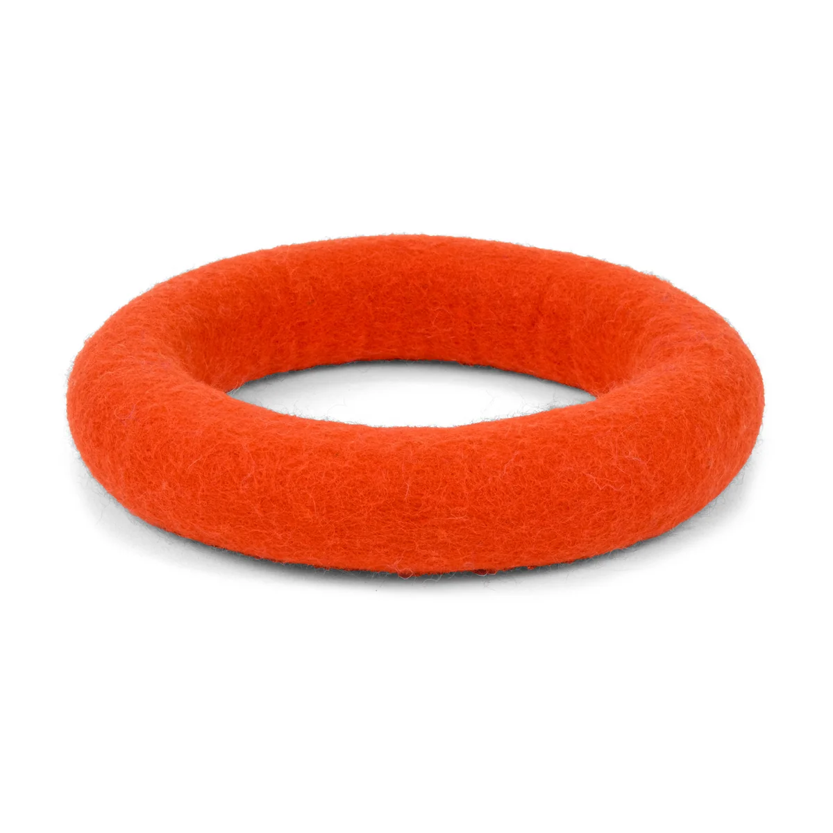 Le jouet pour chien Mats de myfelt est fabriqué en pure laine vierge, il ne contient pas de substances nocives, il est antisalissant et antibactérien. Il est esthétique et durable, idéal pour gambader même sur des sols sensibles ou bruyants et favorise en outre la santé dentaire.