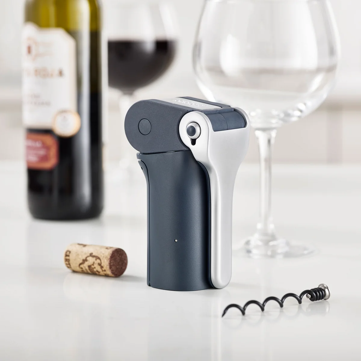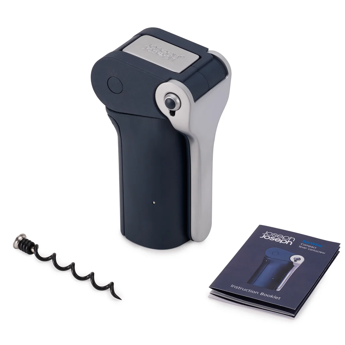 Le tire-bouchon à levier compact de Joseph Joseph de la série BarWise combine la puissance concentrée d'un grand tire-bouchon à levier dans un design intelligent et pliable. Alors que les autres tire-bouchons ont tendance à être gros et encombrants à l'utilisation et au rangement, le tire-bouchon à levier BarWise convainc par sa facilité d'utilisation. Le tire-bouchon enlève le bouchon en un seul mouvement de levier. Il dispose également de deux coupe-feuilles intégrés et d'un fil anti-adhésif qui se glisse facilement dans chaque bouchon.