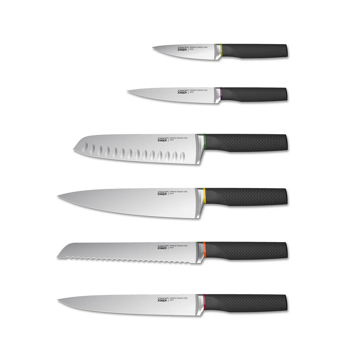 Le LockBlock de Joseph Joseph est vendu seul ou en kit avec des couteaux marqués d'un indice coloré.